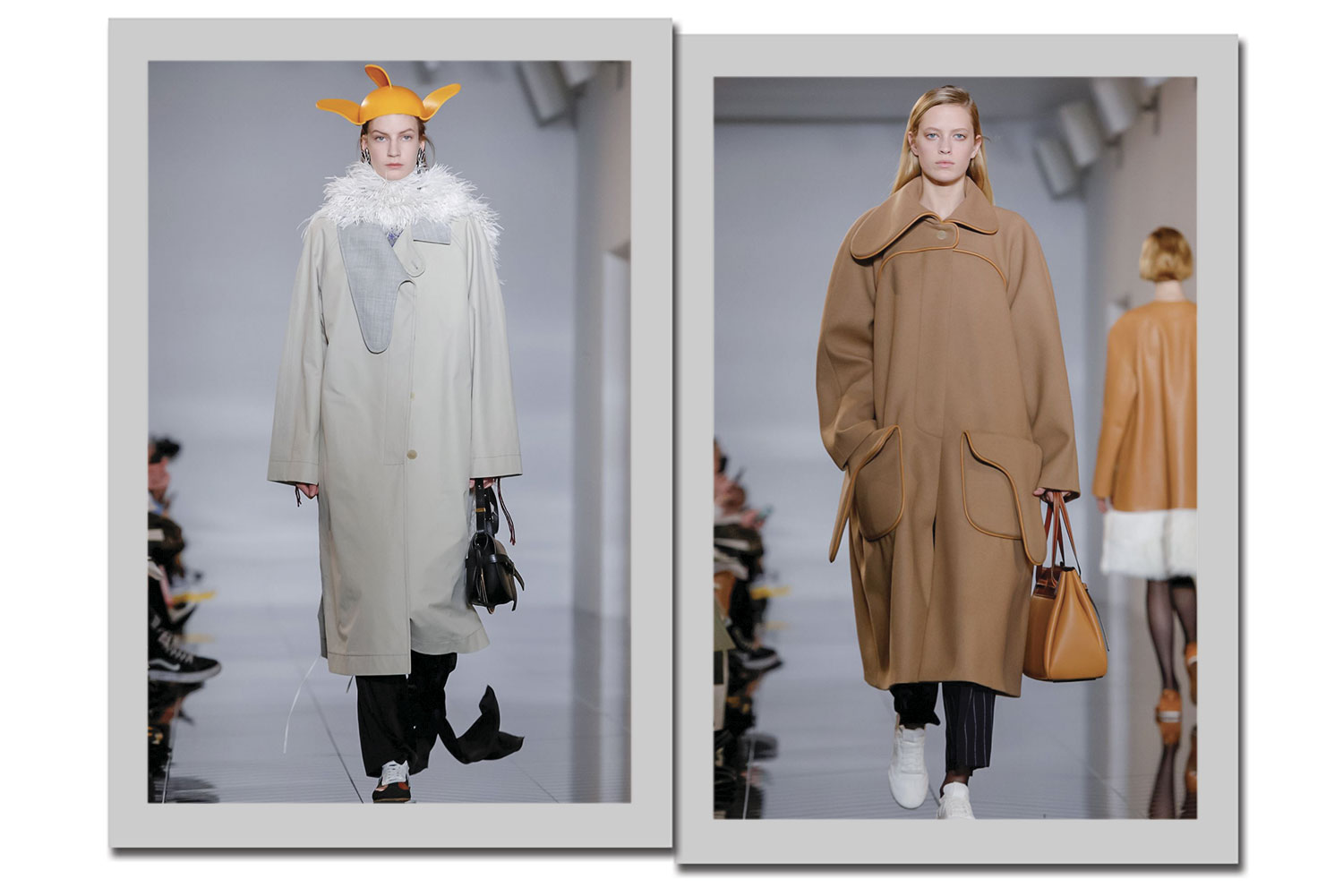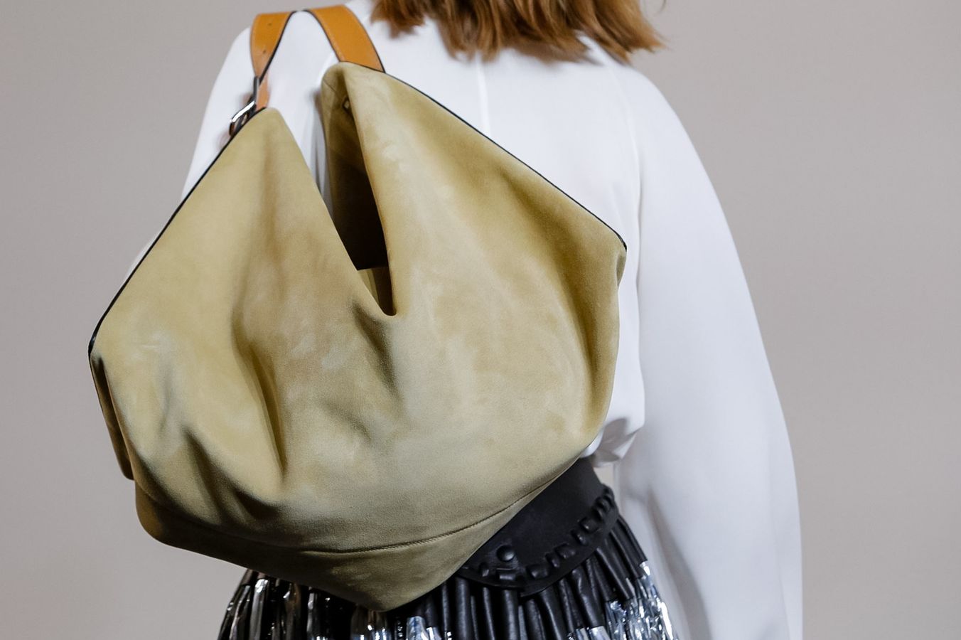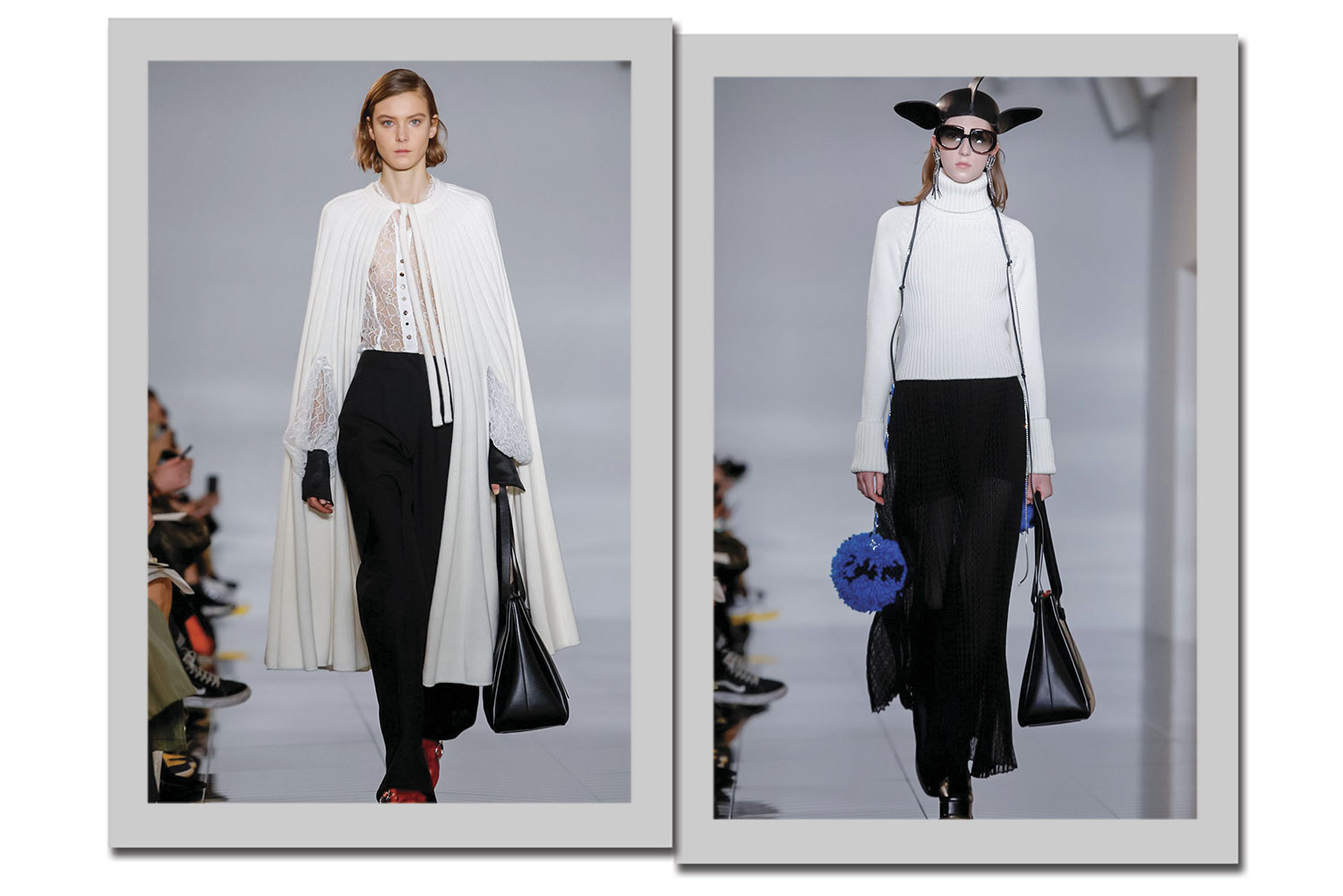 7. A Loewe brincou com as listras nesta coleção. Ela apareceu nas bolsas com diferentes grafismos e nos casacos, onde as listras aparecem na vertical para alongar a silhueta.