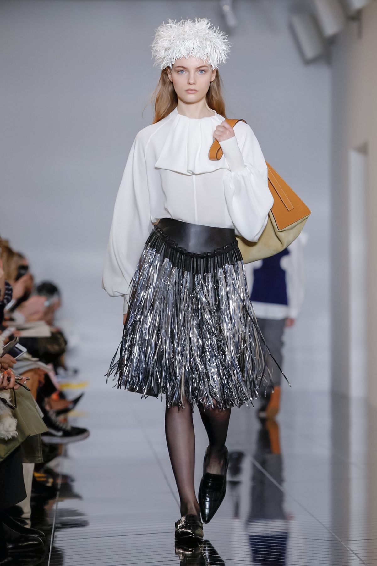 10. Única peça metalizada da passarela da Loewe, a saia prateada iluminou a coleção.