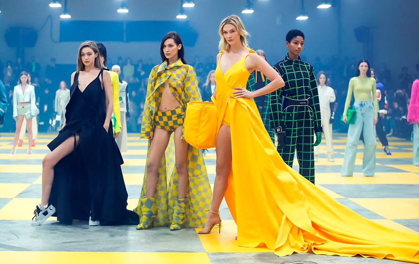 10. Karlie Kloss fechou o desfile da Off-White com o glamour da Yellow Fever.