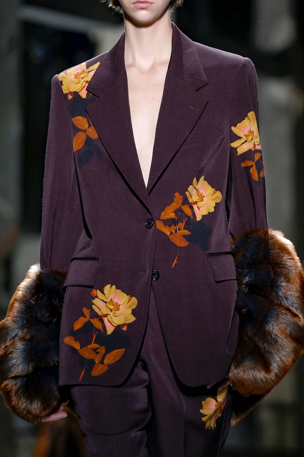 6. As flores como estampas adicionaram delicadeza aos looks de Dries Van Noten.