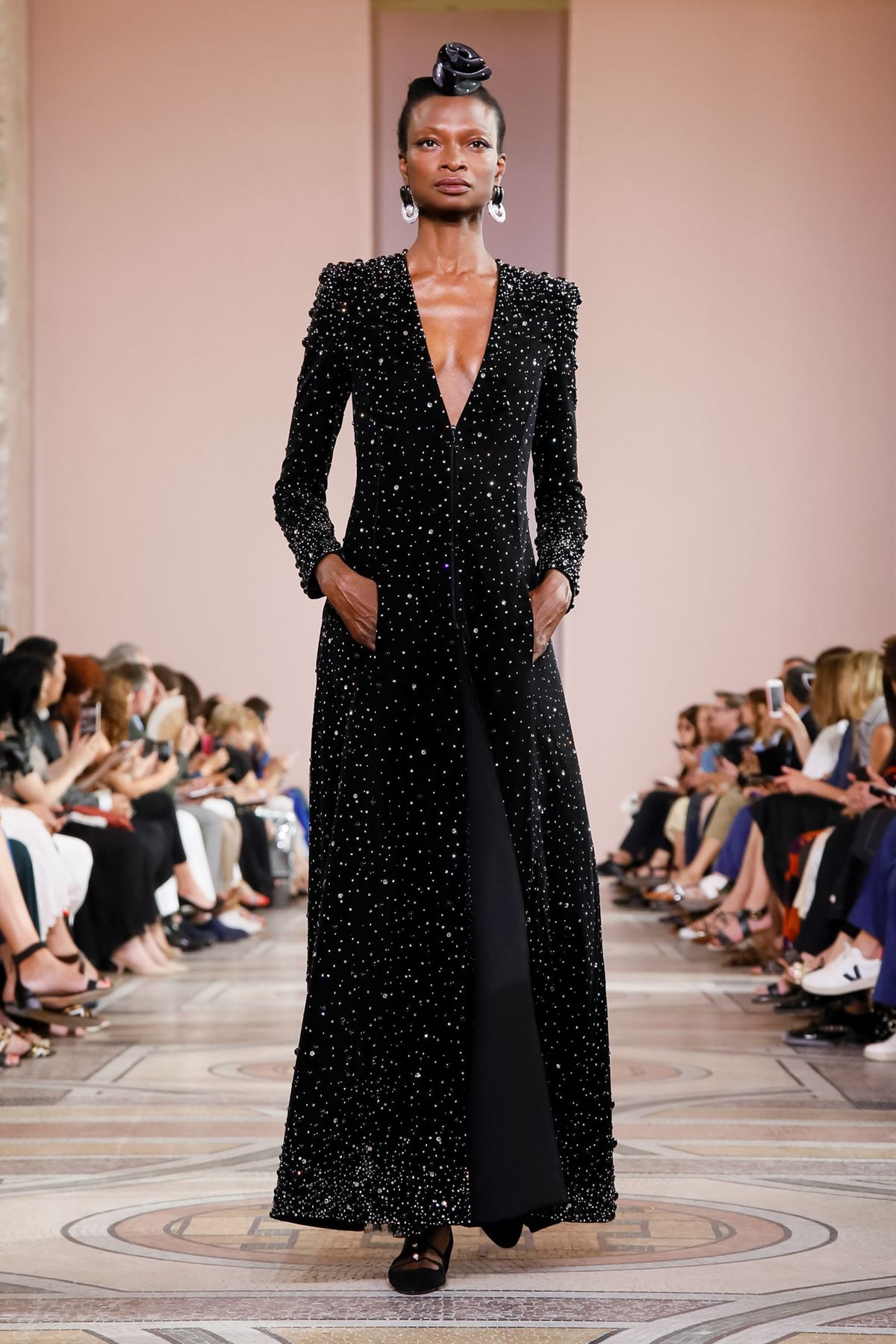 Giorgio Armani escolheu o suntuoso Petit Palais para apresentar a coleção de inverno 2020 da Armani Privé: uma profusão de sua especialidade, a alfaiataria, com variações de comprimento e de largura, seja em modo plum ou com dois botões.