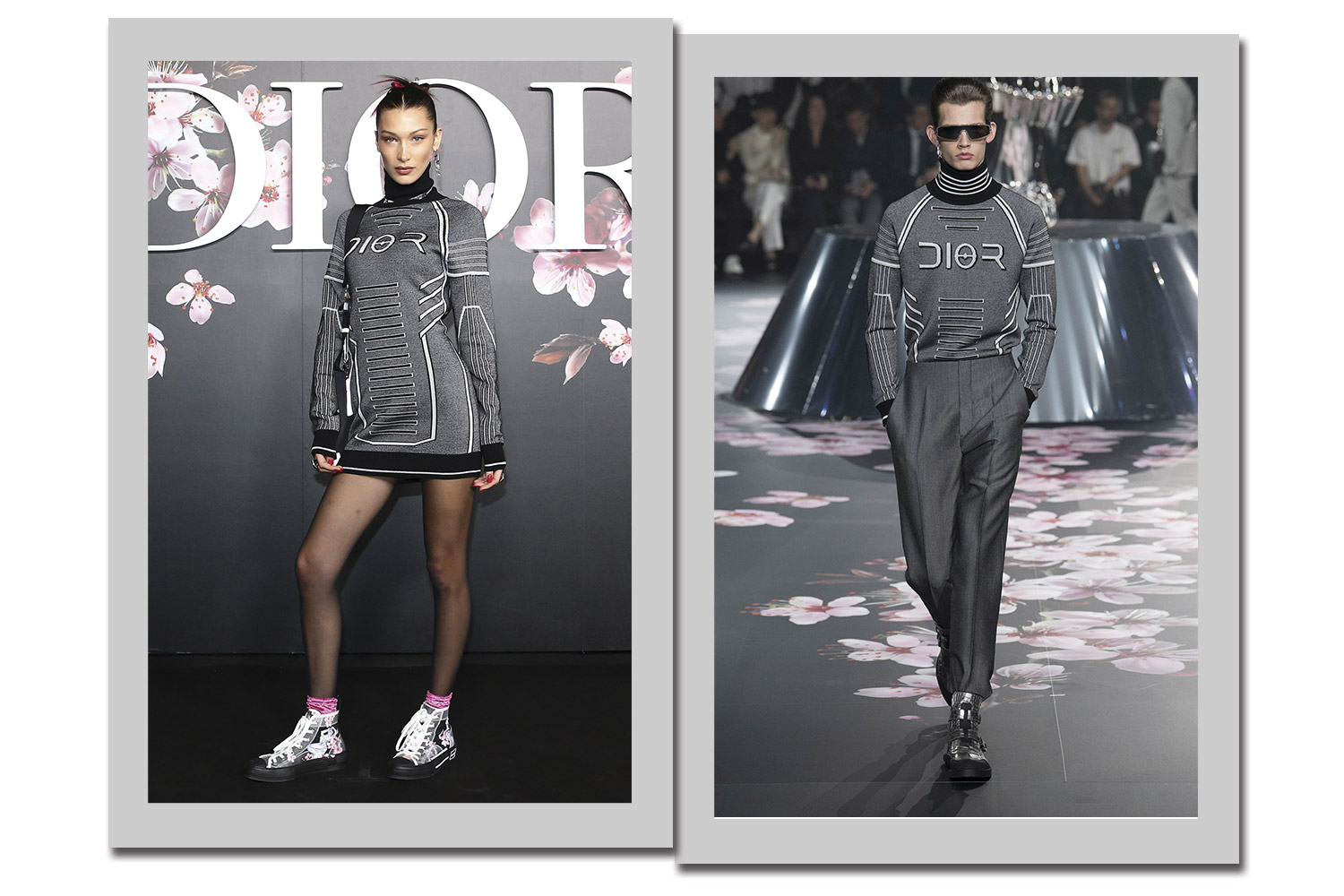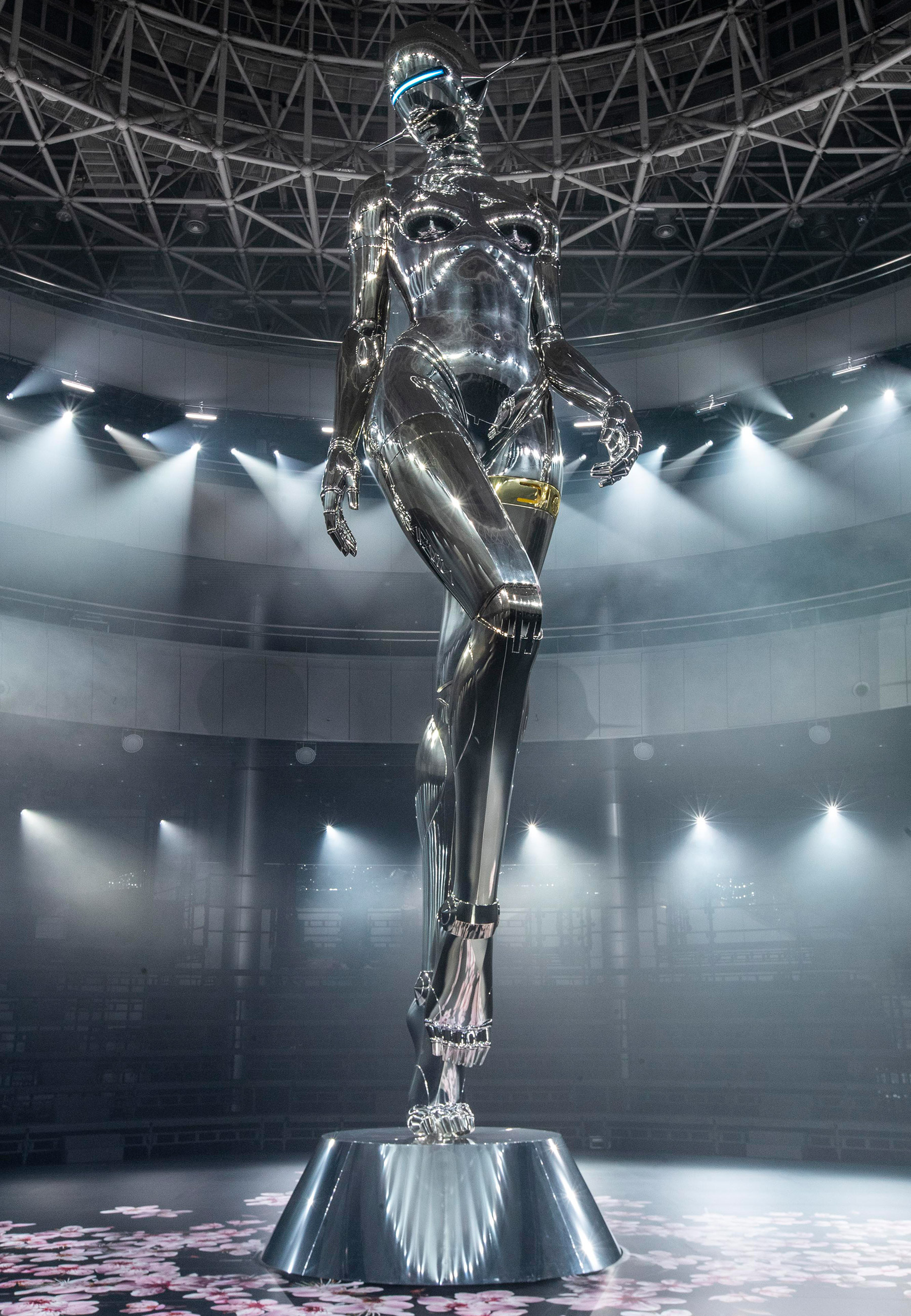 A escultura de Hajime Sorayama já deu a dica: o robótico é a tendência da vez. O look que abriu o desfile ganhou versão de vestido para Bella Hadid e #bazaarama.