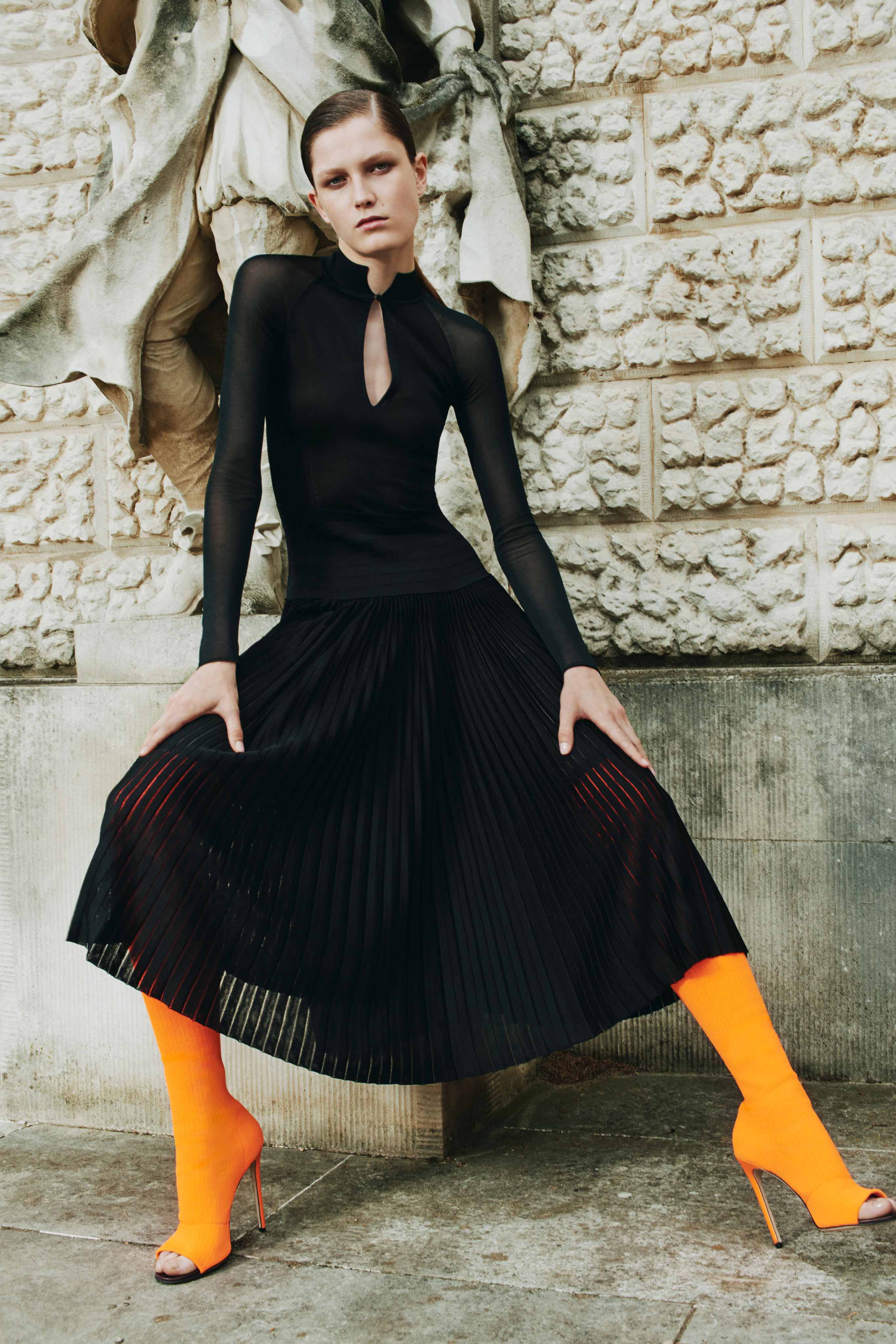A transparência aparece discretamente para sensualizar os looks sérios da Victoria Beckham.