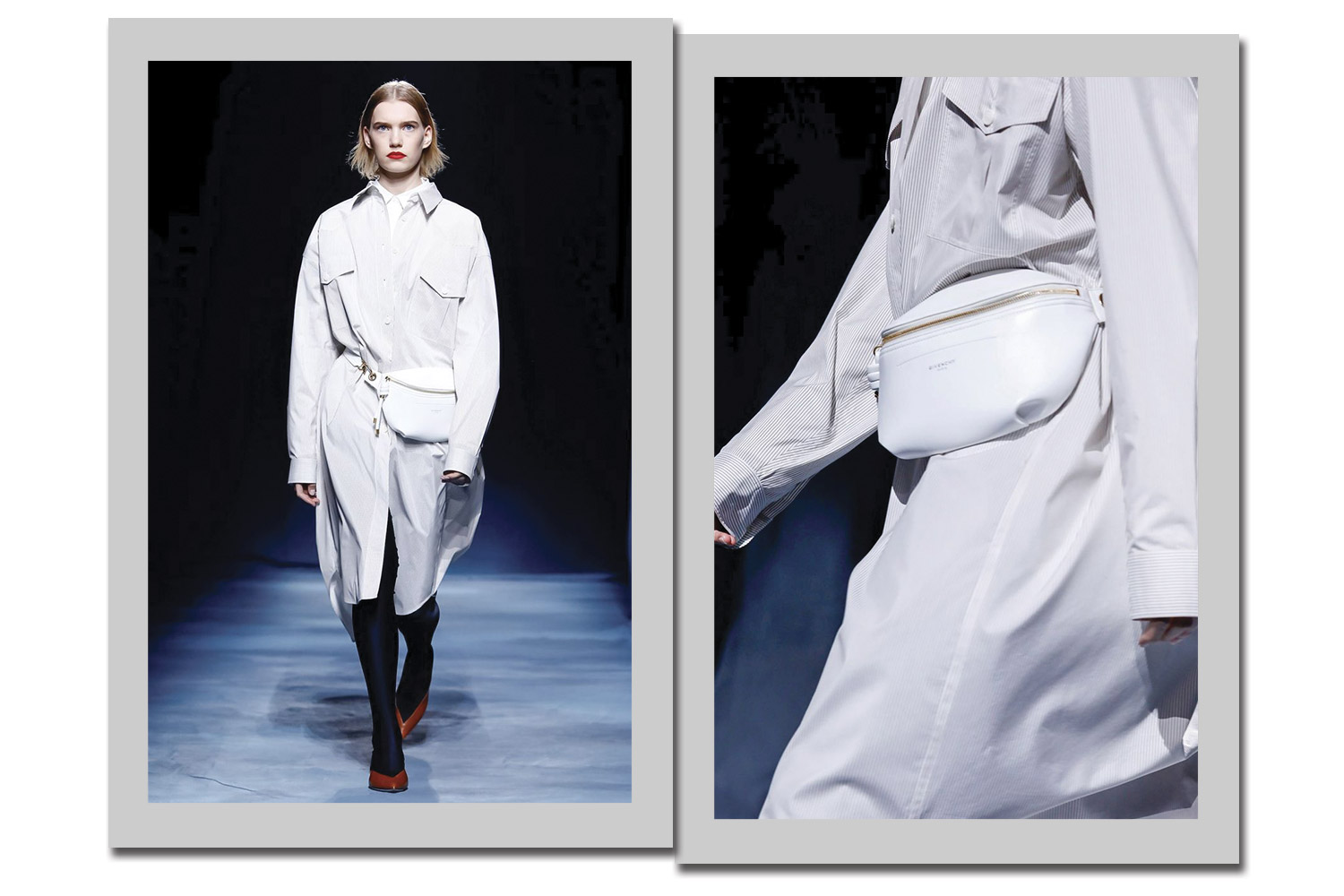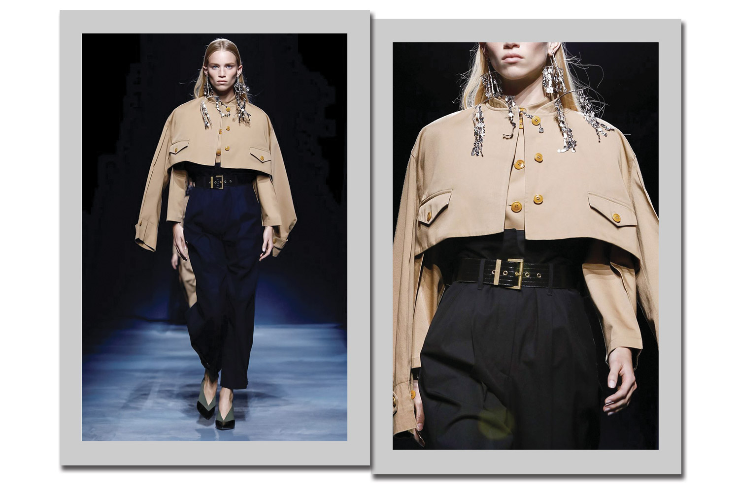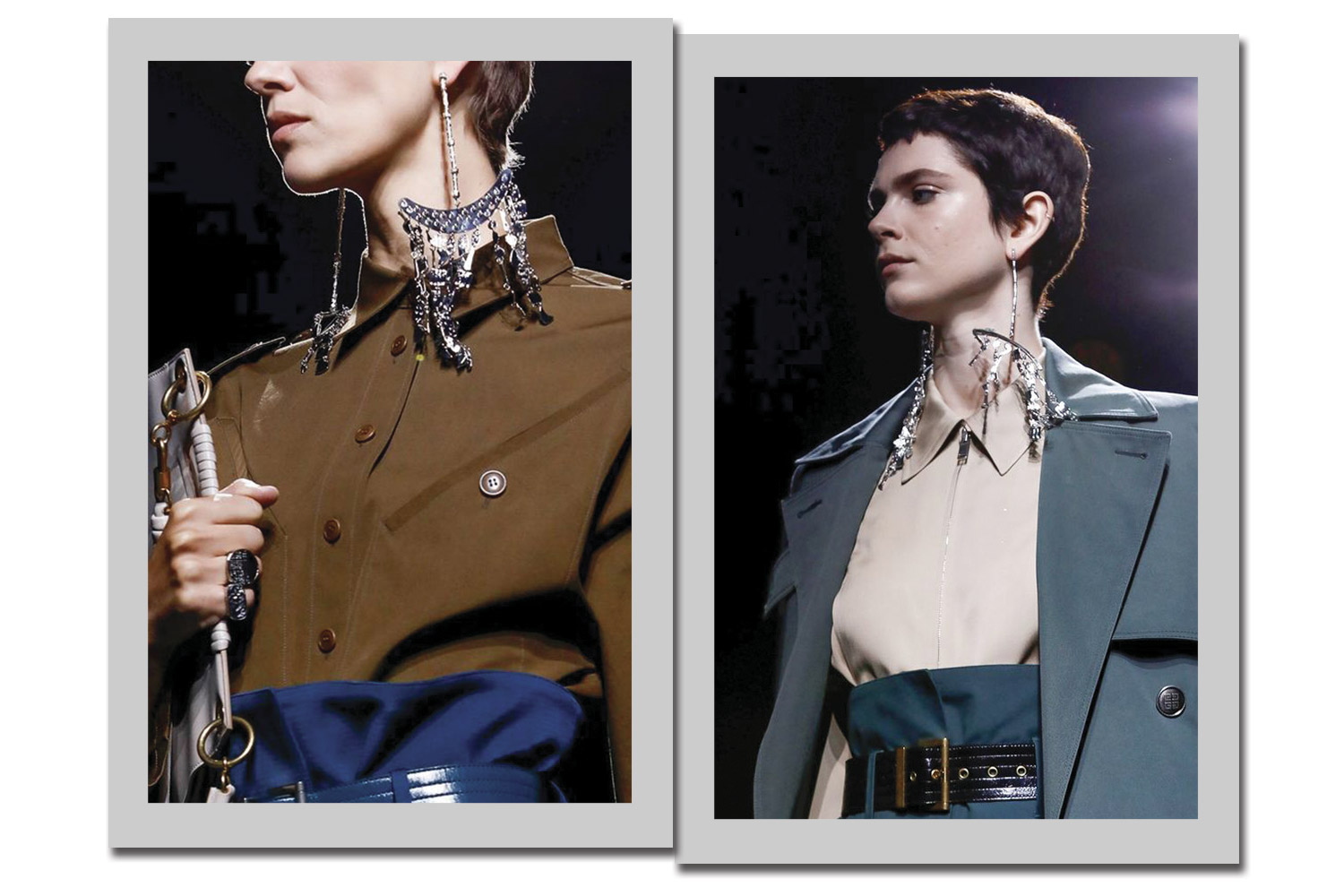 A ideia da sobreposição permeia toda a nova coleção da Givenchy. Um dos modelos mais emblemáticos é o casaco inspirado no trench com dois modelos sobrepostos – e quatro mangas!