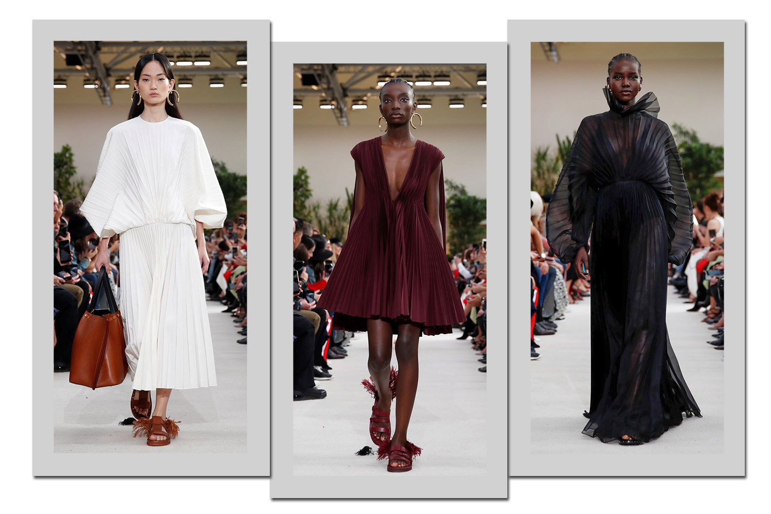 Românticos, os plissados são trabalhados de uma maneira estruturada única na passarela da maison.