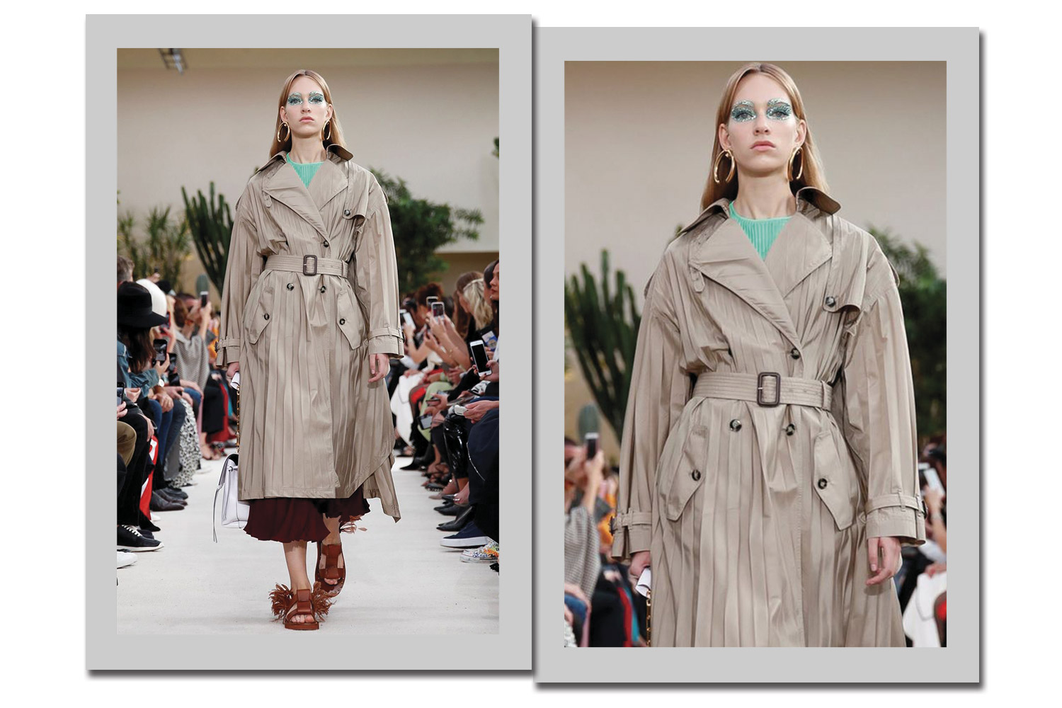 A Valentino faz uma releitura romântica do clássico trench coat, que ganha uma versão plissada de encher os olhos.