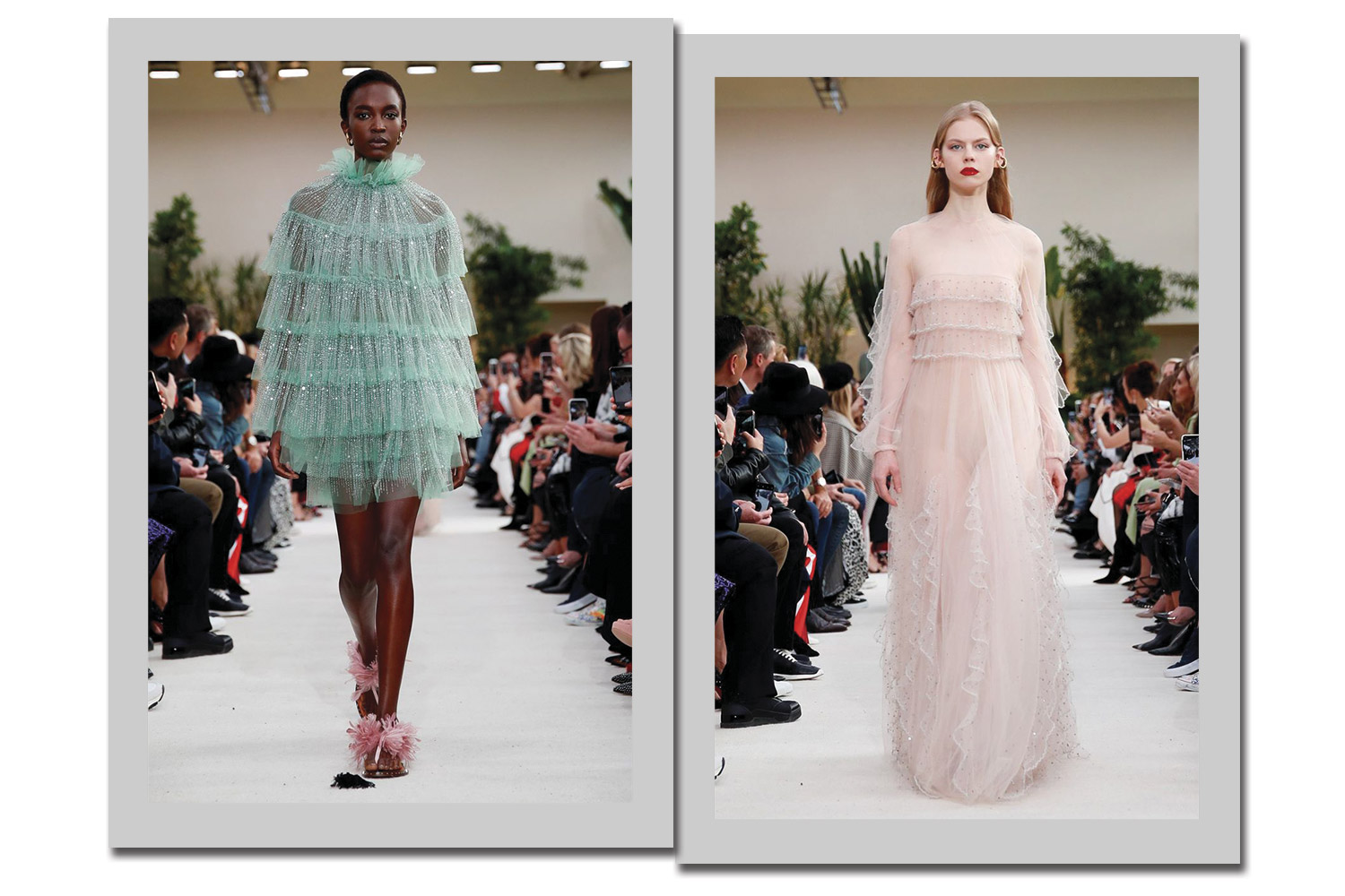Claro que tem vestido de “momento princesa” na passarela da Valentino. O tule garanta aquele toque de realeza nos looks de festa.