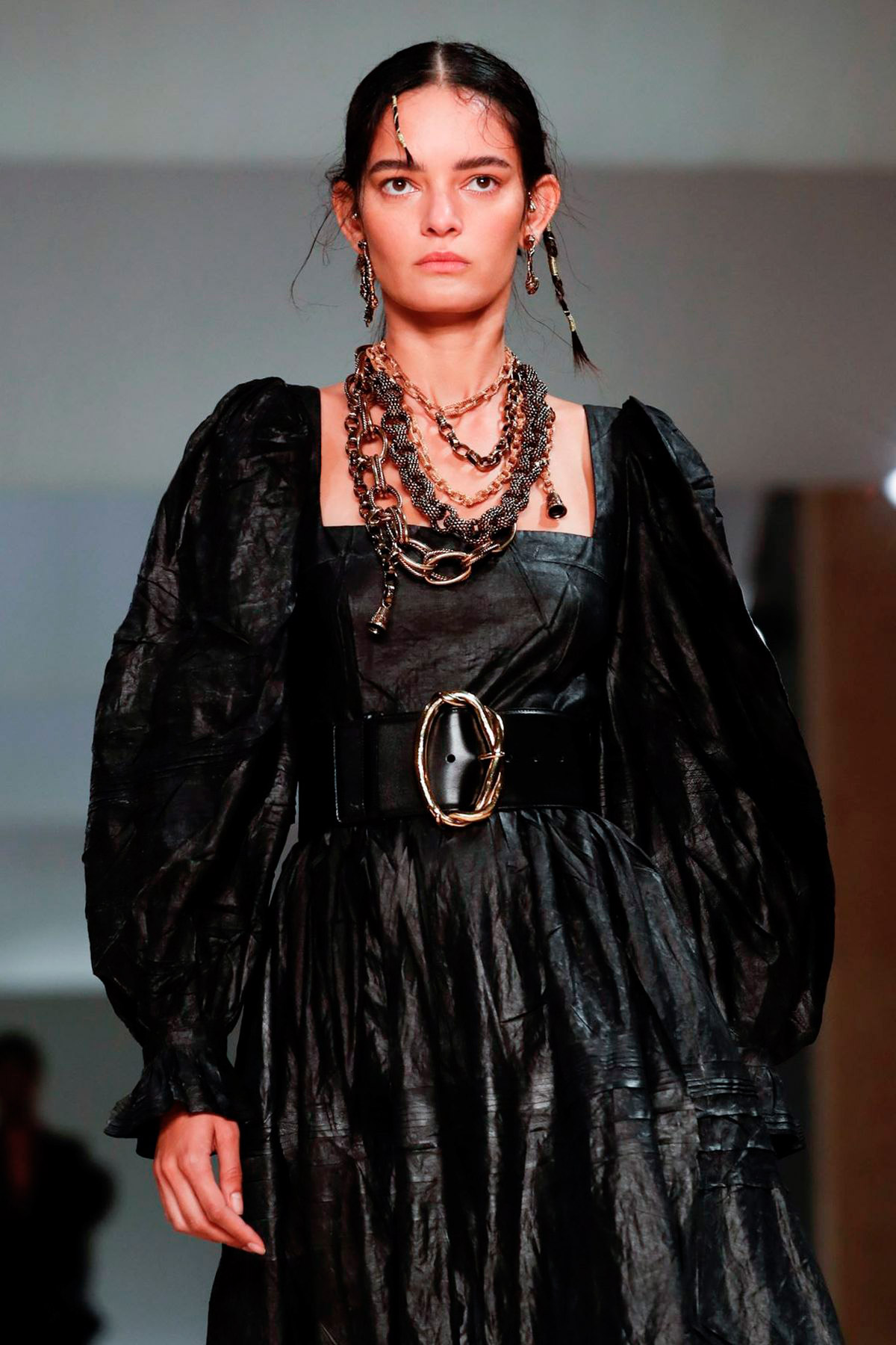 O truque de styling do verão 2020 da Alexander McQueen é usar vários colares e correntes ao mesmo tempo.