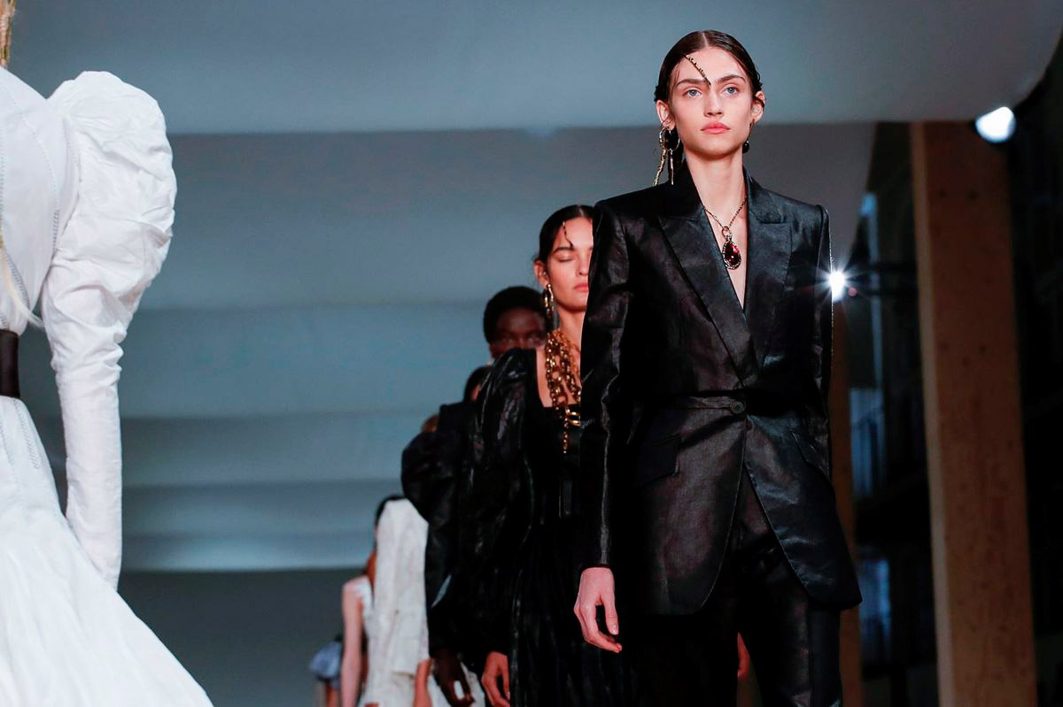 Riqueza fashionista e o mood gótico marcam a passarela de Alexander McQueen na segunda-feira (30.09), no desfile de verão 2020 da grife na semana de moda de Paris.