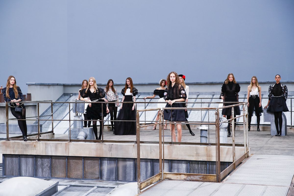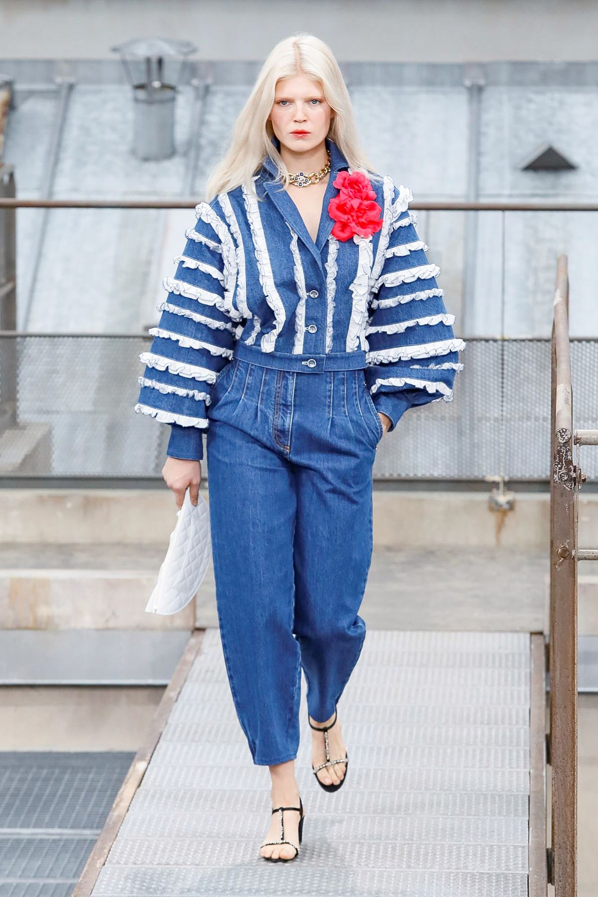 A Chanel trouxe os românticos telhados de Paris para o Grand Palais, onde Virginie Viard mostrou sua visão parisiense para o verão 2020. Tailleurs com minissaias e shorts de couro – tendência máxi da próxima estação! -, jaquetas quadriculadas estilo boyish ao lado de uma veste em jeans com a doçura do bordado inglês, mas com uma pegada supermoderna.