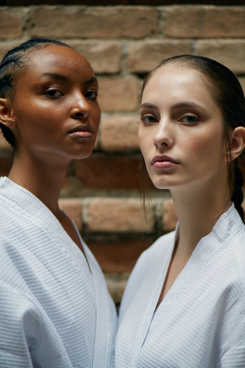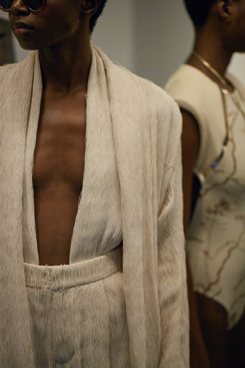 Para a beleza do show, o natural foi a escolha. “Pele hidratada é a chave do visual”, disse o maquiado Silvio Giorgio, que usou produtos apenas da Simple Organic. O iluminador foi usado para adicionar luz ao rosto das modelos, que ganhou pinceladas de blush em tons terrosos.