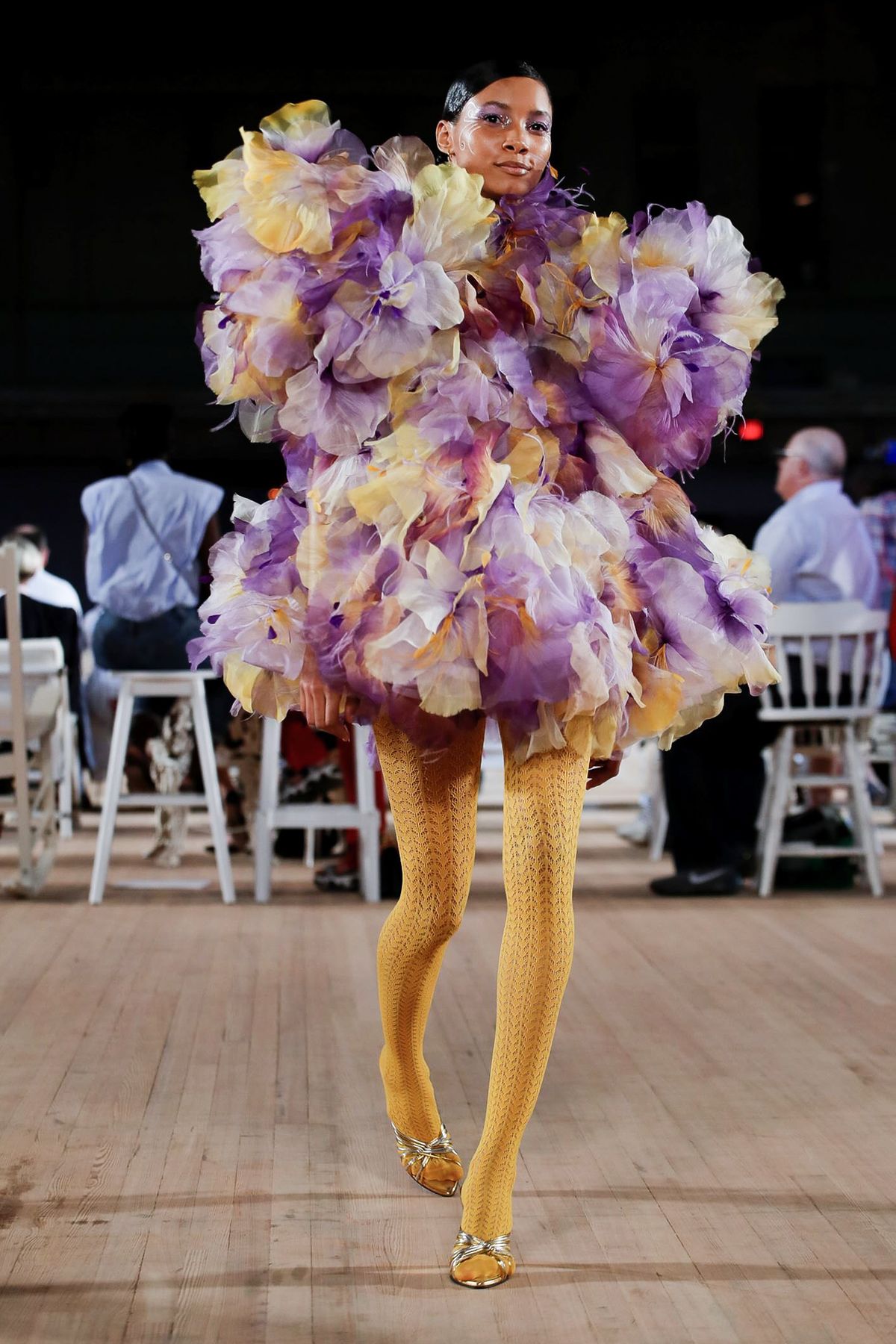 Renascentista e rococó: Kaia Gerber foi eleita para desfilar com o vestido suntuoso e florido.