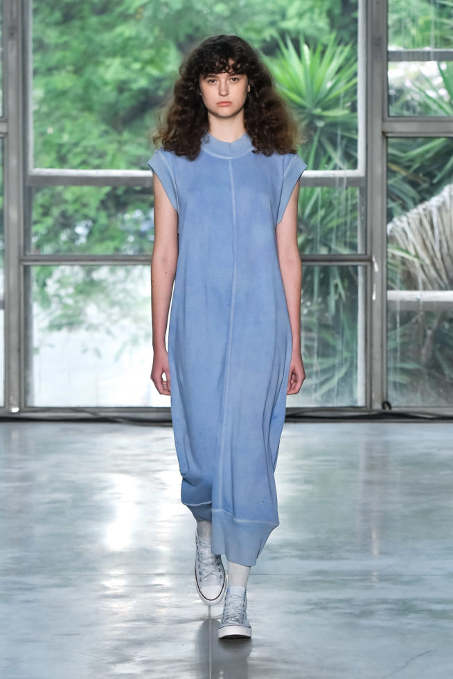 Entre diversos materiais usados, o moletom foi um dos destaques, principalmente usado para criar peças fluidas.