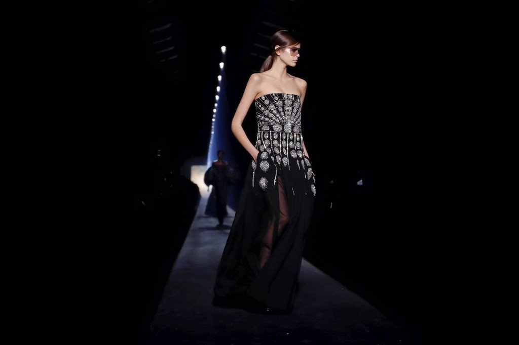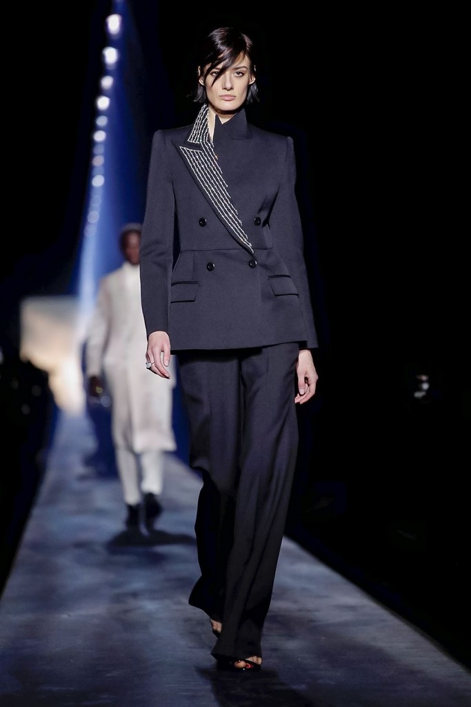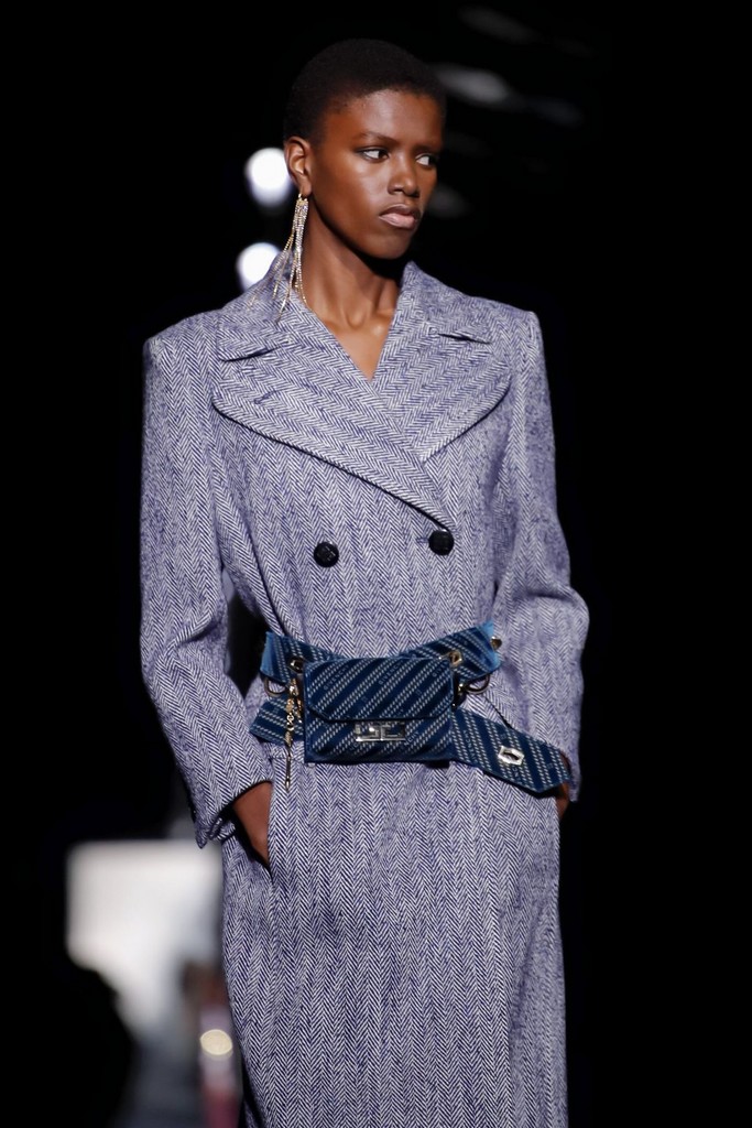 1. Seguindo a tendência de casacos estruturados, a grife apresentou uma opção diferente: ombreiras arredondadas.