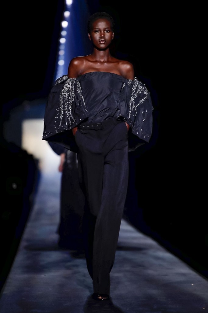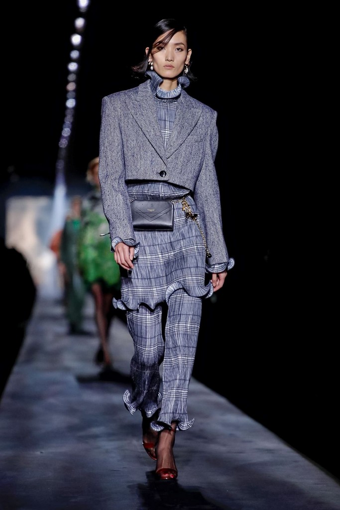 O inverno 2019 da Givenchy é um exercício de volumes em ombros e mangas. Clare Waight Keller, diretora criativa da marca, foi buscar nos anos 1980 e nos arquivos da marca inspiração para dar continuidade à desconstrução da silhueta perfeita sem perder de vista a elegância bem costurada em alfaiataria.