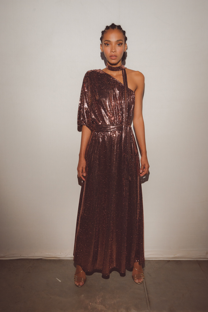 Na abertura do desfile de inverno 2020 da Lilly Sarti, destaca-se o cinto com fecho de coração, já dando tom pop anos 1970 que veríamos na passarela. “Para fechar essa década, revisitamos a história da marca, olhando o que ainda faz sentido para gente”, disse a designer. E essa brincadeira continua nos elementos hits da label, revisitados pelo brilho de paetês, lurex e veludos molhados com aplicações de mini cristais.