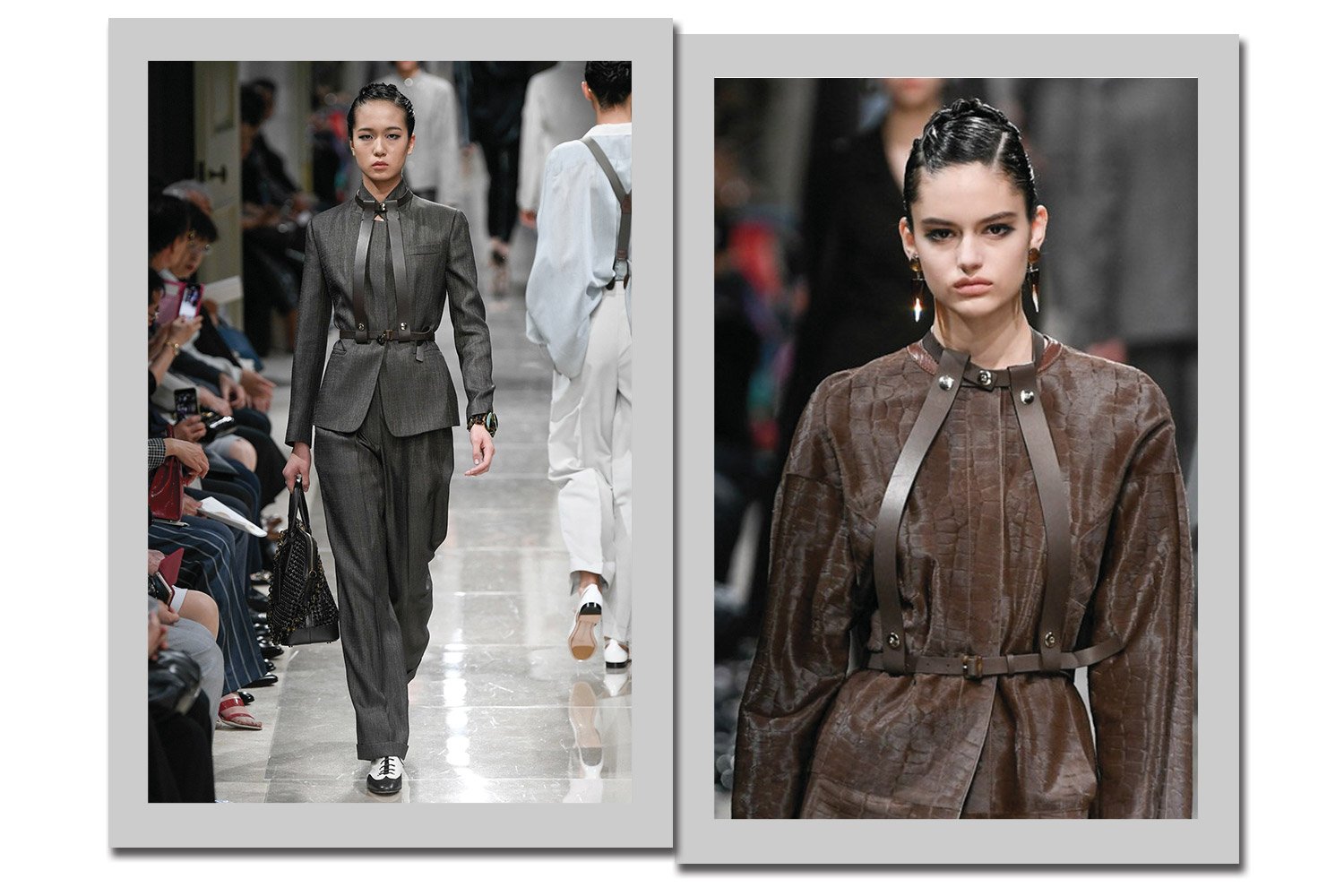 As fitas em couro que cobrem o peito formam os acessórios preferido da redação de todo o desfile.