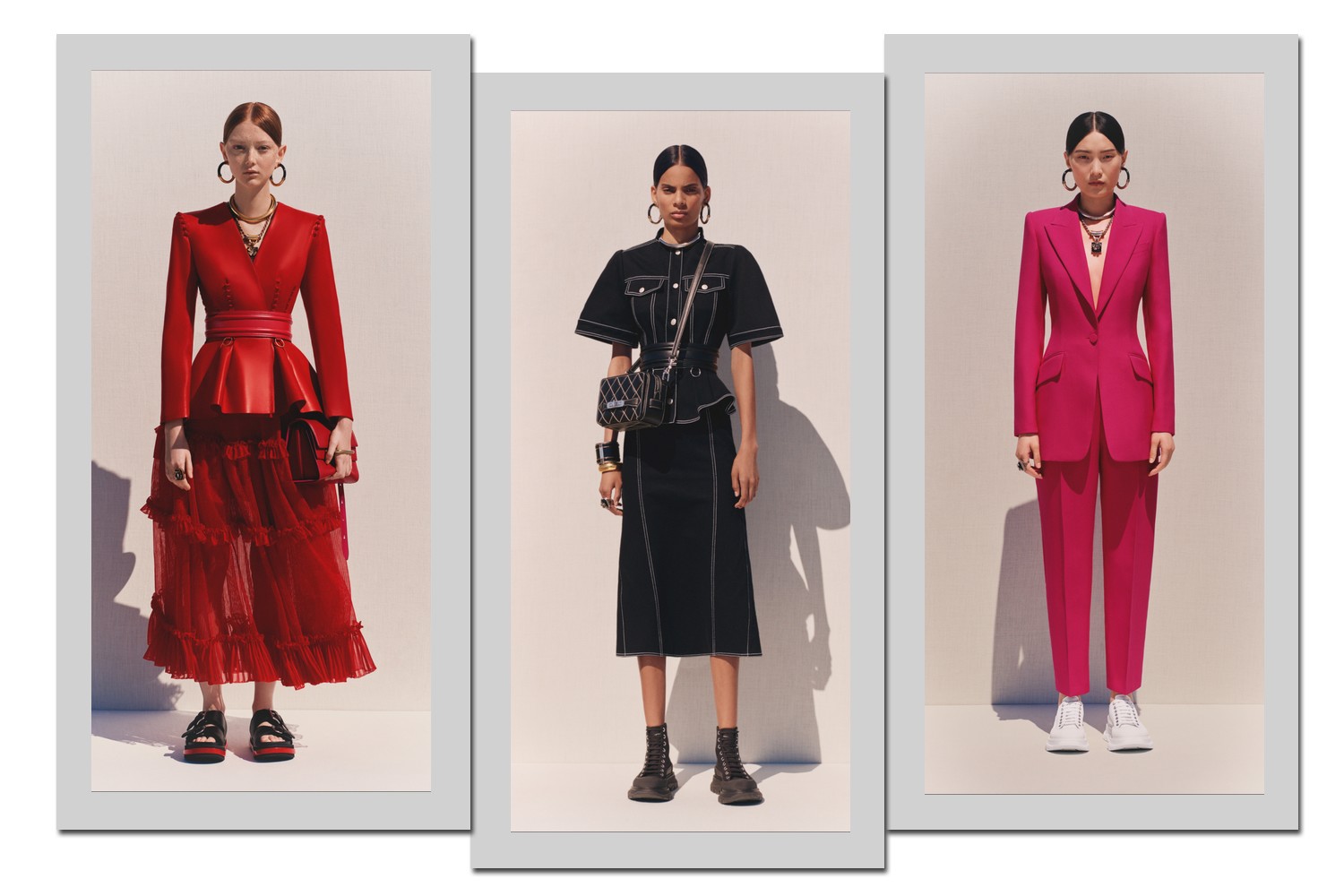 Essa construção criou uma imagem forte para mulheres que não querem deixar a delicadeza de lado. Silhuetas acinturadas, transparências e renda ganham outra cara com a cartela de cores intensas, ombros destacados e acessórios mais pesados. Veja dez coisas que amamos no resort 2020 de Alexander McQueen: