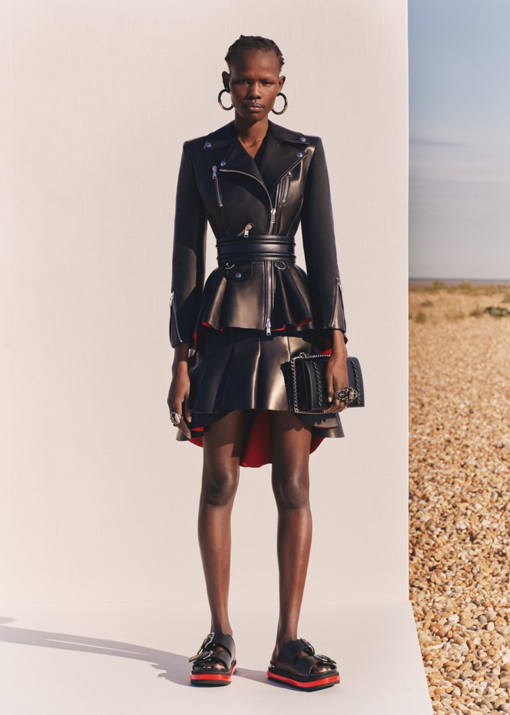A jaqueta de couro estilo motoqueiro é a peça-desejo do resort 2020 de Alexander McQueen.