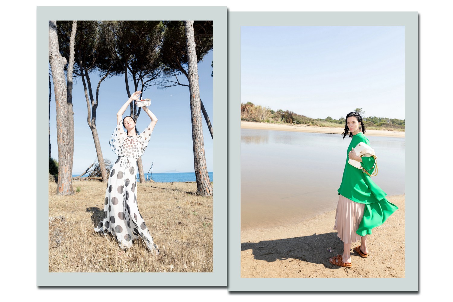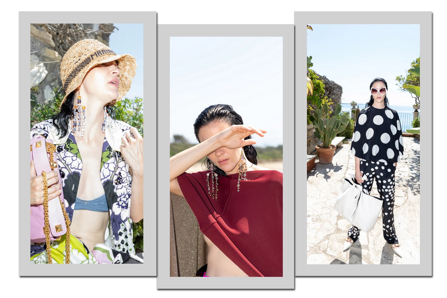 Fotografado pelo próprio diretor criativo da Valentino, com uma de suas amigas no papel de modelo e nas proximidades de sua casa na Itália, a coleção tem um mood familiar que ganhou um toque especial com uma participação fofa nas imagens: um cachorro curtindo o melhor que há de férias na praia.