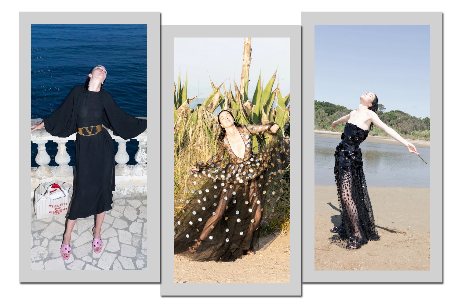 Conversando perfeitamente com o cenário praiano das fotos, a transparência reforça a leveza do resort 2021 da Valentino.