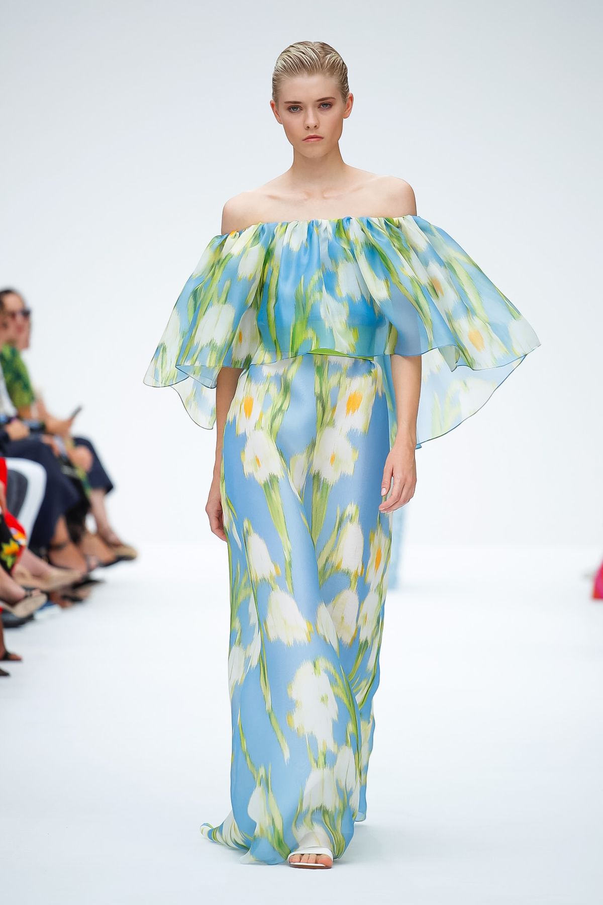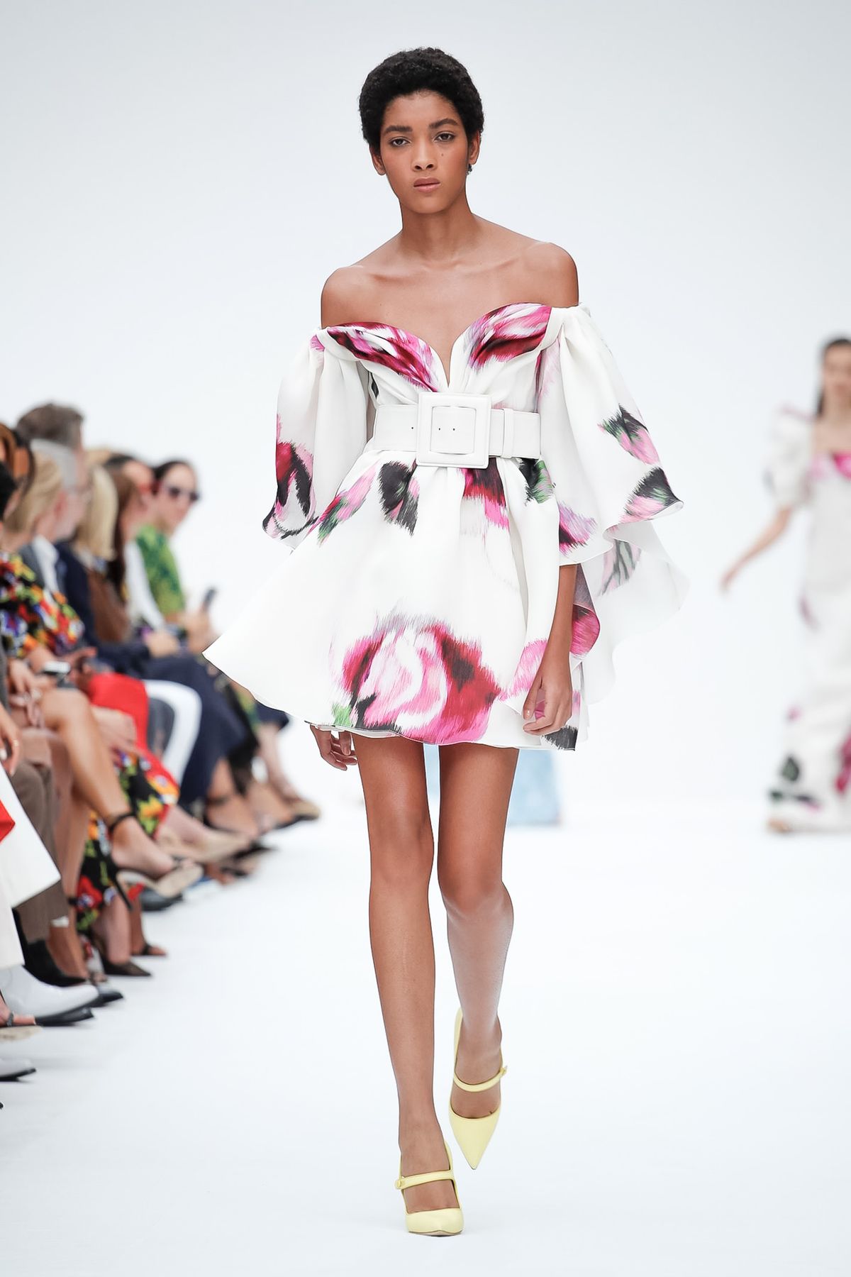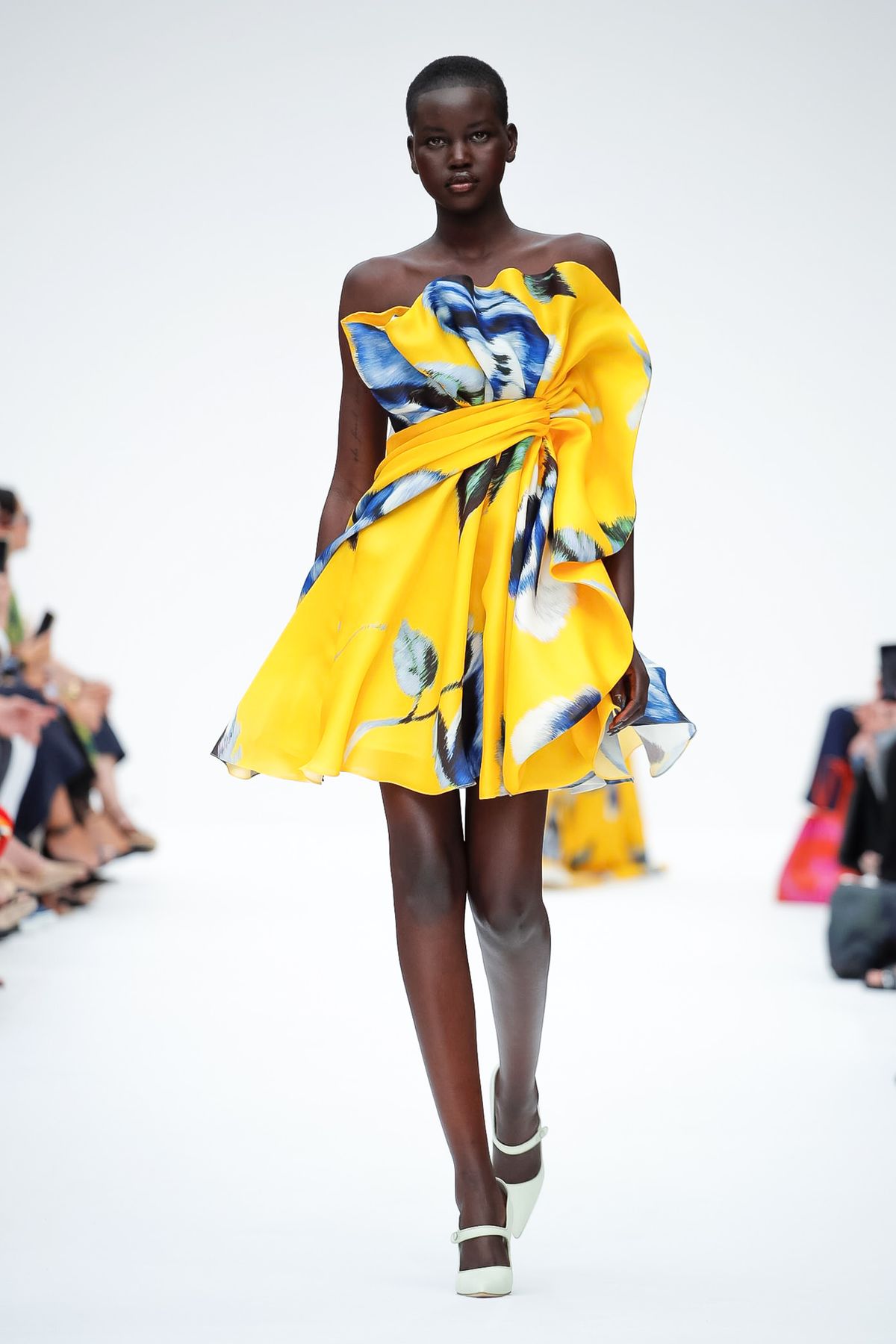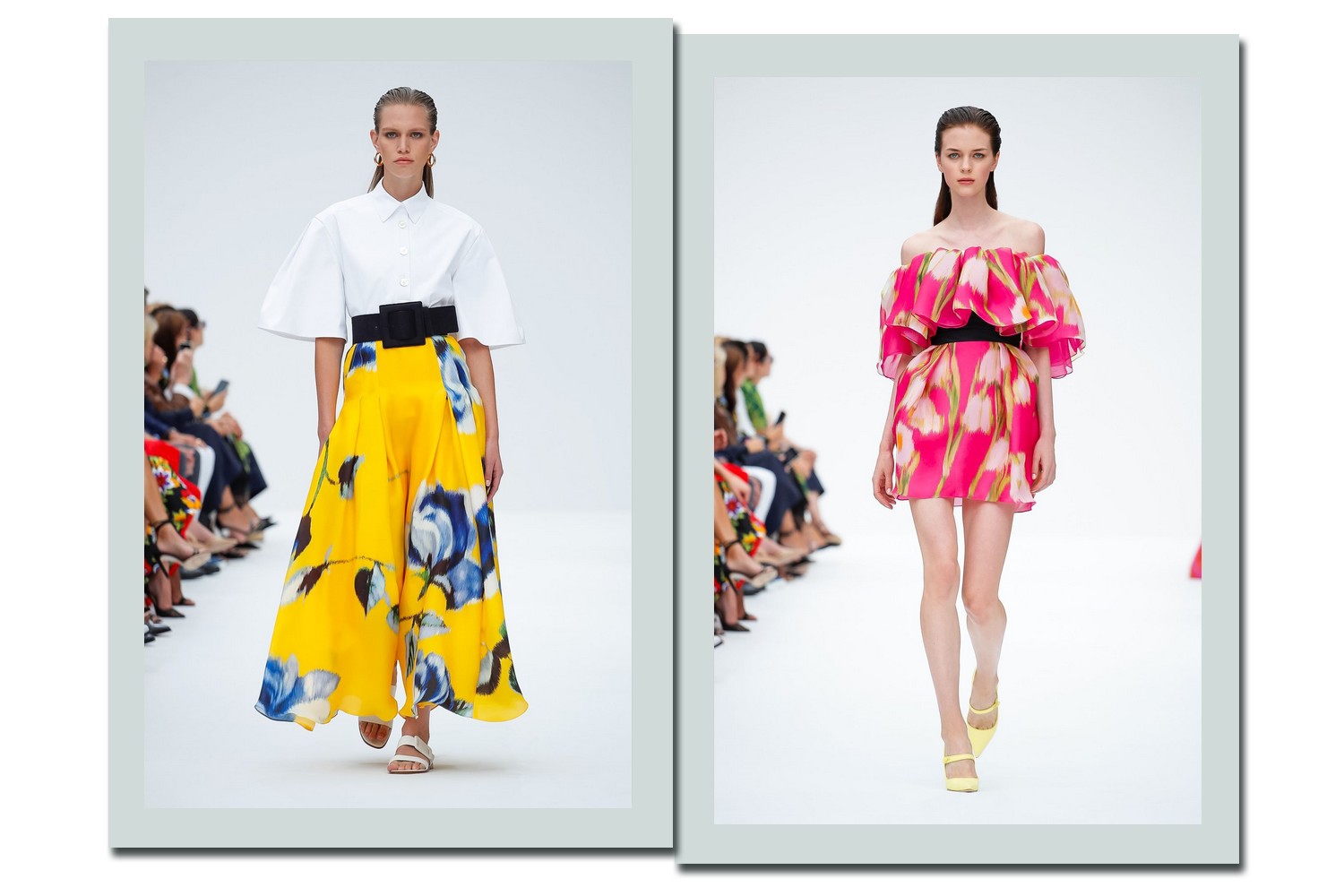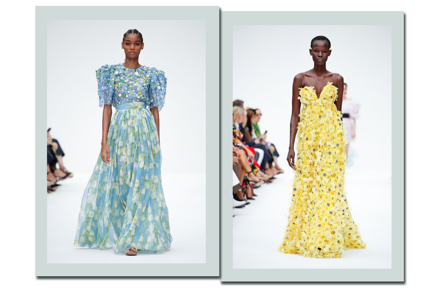 Inspirado pelo fenômeno botânico chamado de “Super Bloom”, Wes Gordon levou para a passarela o florido das verbenas, lírios e papoulas em cores supersaturadas, como amarelo, rosa, laranja e verde.