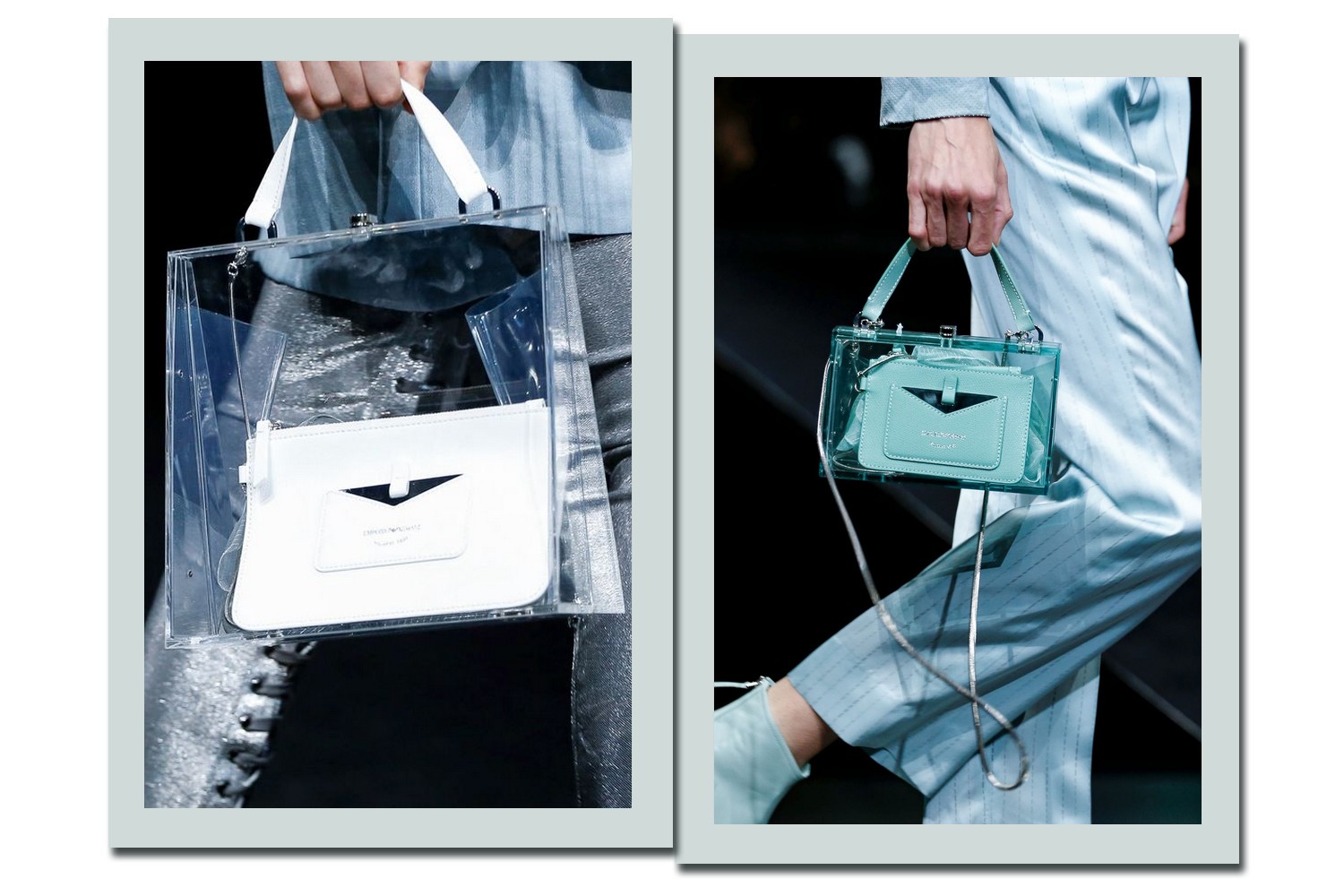 As bolsas transparentes, usadas uma dentro da outra, apareceram em diferentes tamanhos e formatos.