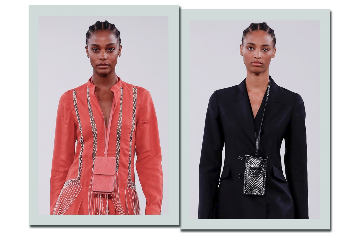 As minibolsas – que estão muito em alta – foram usadas como colares.