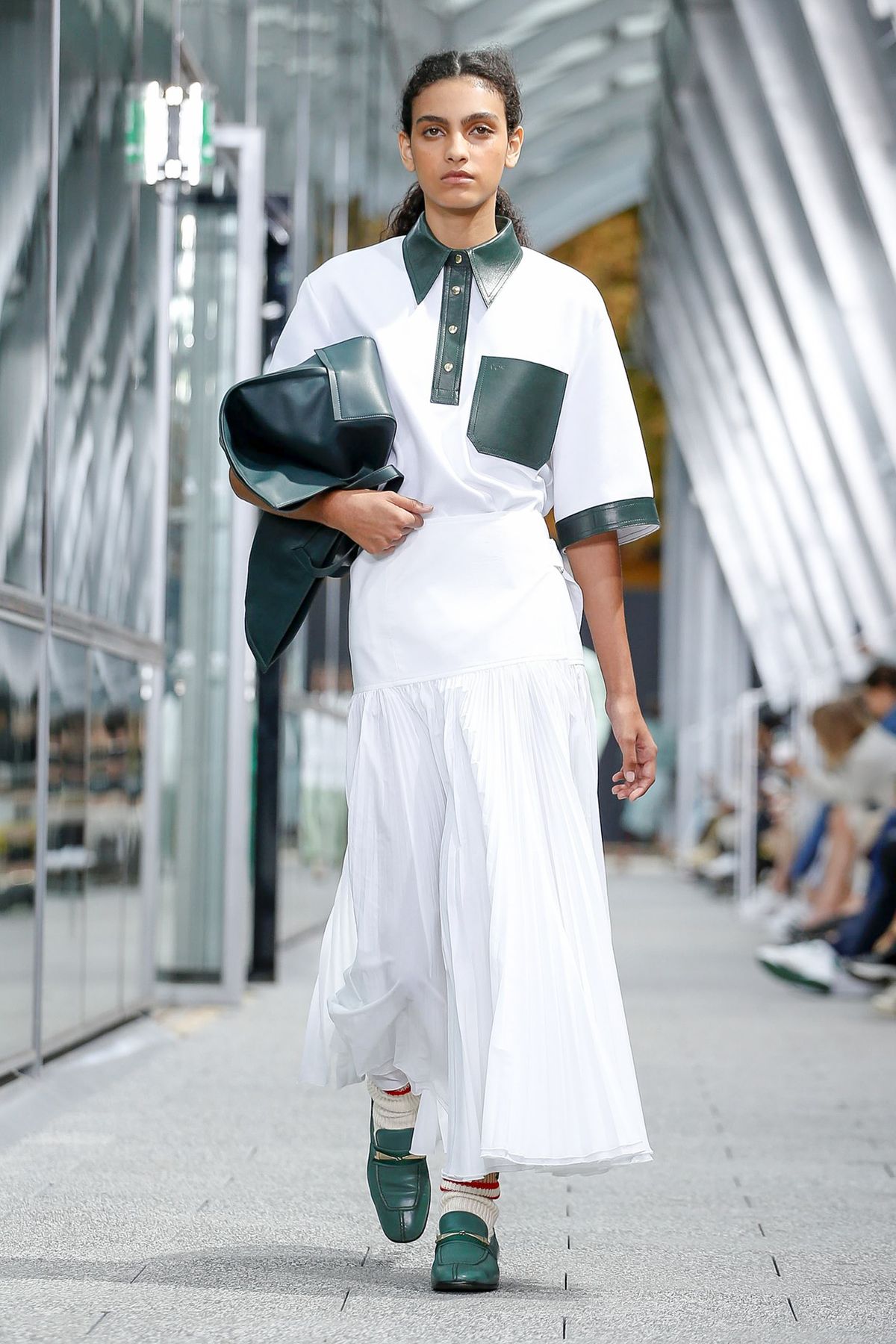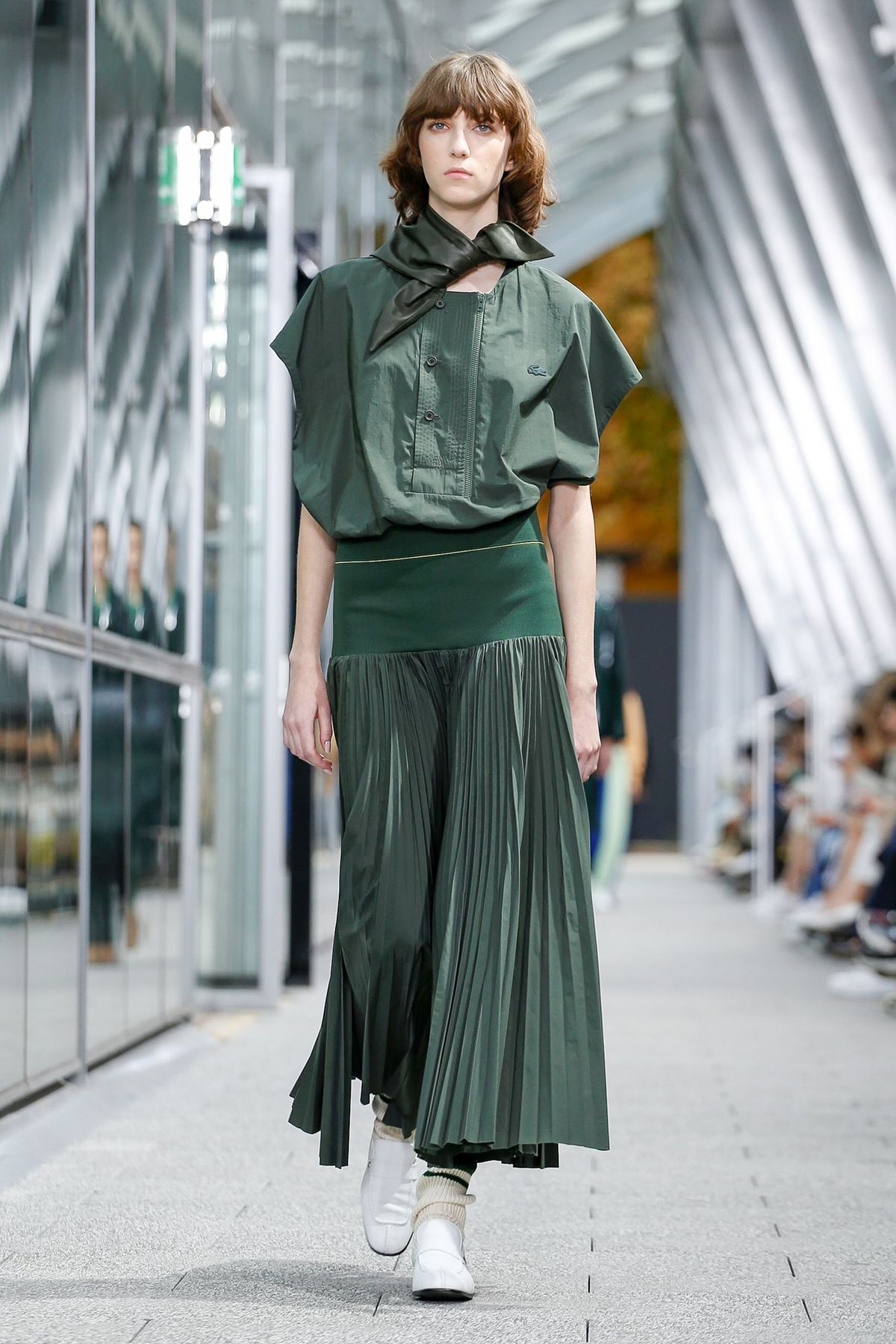 As saias plissadas uniram o momento mais moderno da marca com sua origem esportiva, remetendo à minissaia de tênis.