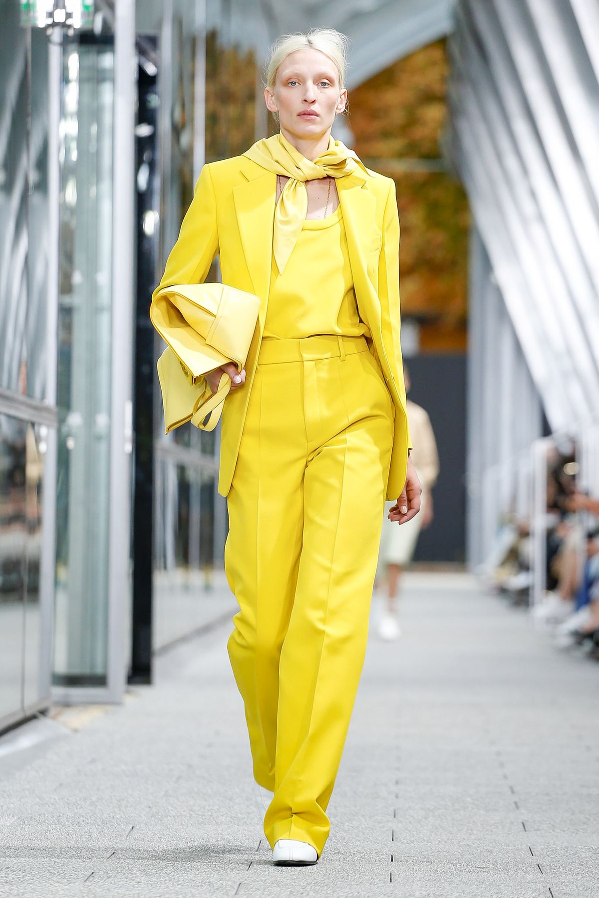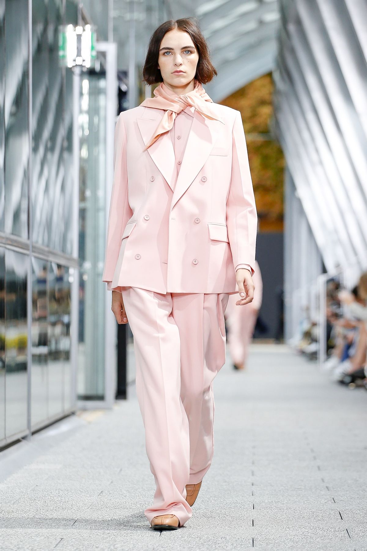A Lacoste lotou o estádio Roland Garros de fashionistas para a apresentação de sua coleção de verão 2020. Uma profusão de terninhos retos e oversized com caimento impecável riscou a passarela, junto com saias longas e deliciosamente plissadas, uma alusão certeira à minissaia para jogar tênis. Com trench-coats com lenço amarrado no pescoço e longos vestidos amplos com pegada esportiva, Louise Trotter sabe incorporar a elegância parisiense ao DNA da marca que nasceu no esporte.