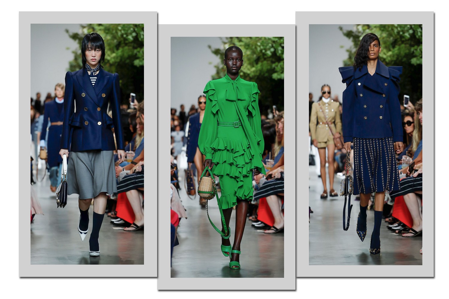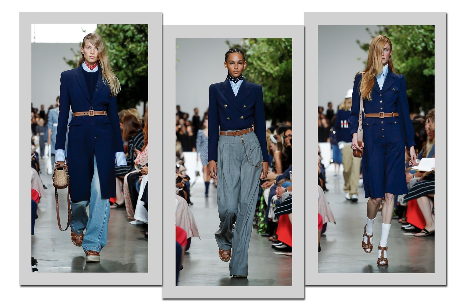 Depois de pedir que seus convidados embarcassem em uma balsa para chegar ao local do desfile, em Navy Yard, no Brooklyn, Michael Kors levou o mood navy para a passarela da semana de moda de Nova York. Azul-marinho, listrado e âncoras deram o ar marítimo a calças, saias e casacos. Além da forte presença da alfaiataria, ombros estruturas e shapes acinturados brincaram com os formatos apresentados.