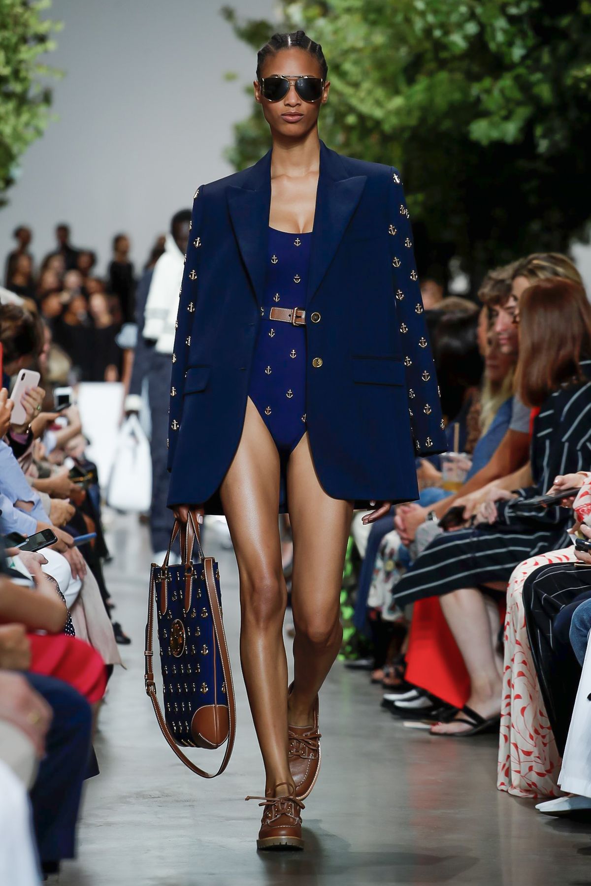 Azul-marinho, listrado e aplicações de âncoras deram um toque náutico à coleção da Michael Kors.