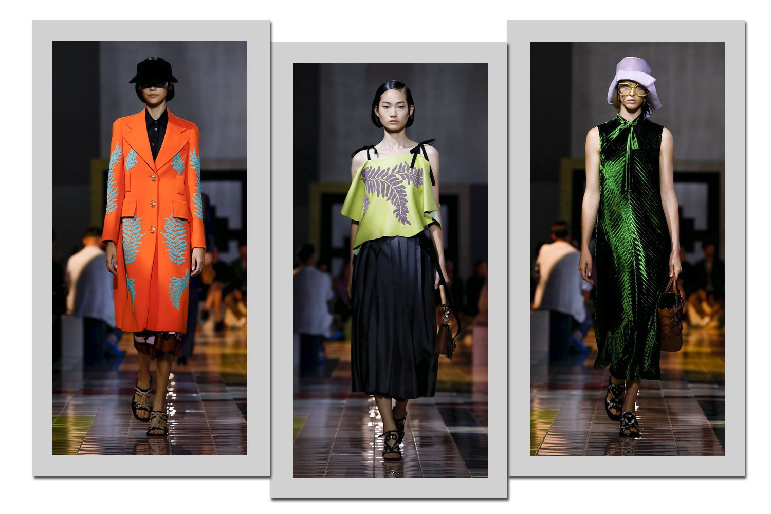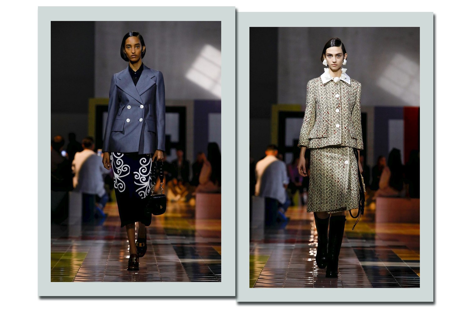 Uma das marcas registradas da Prada são as estampas retrô, que apareceram tanto em conjuntos, quanto em mix de desenhos coloridos.