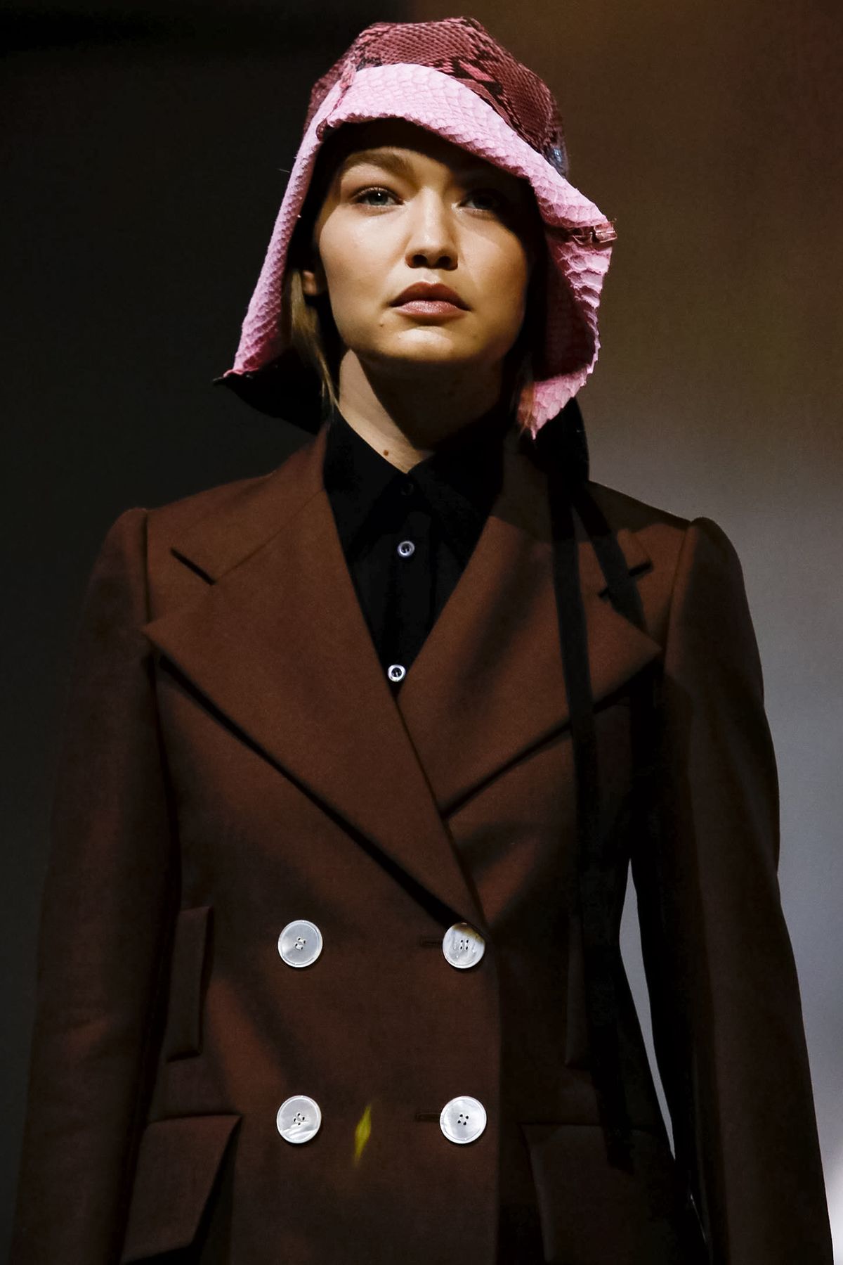 O item must-have da nova coleção da Prada com certeza são os chapéus, que remetem a lenços fluidos.