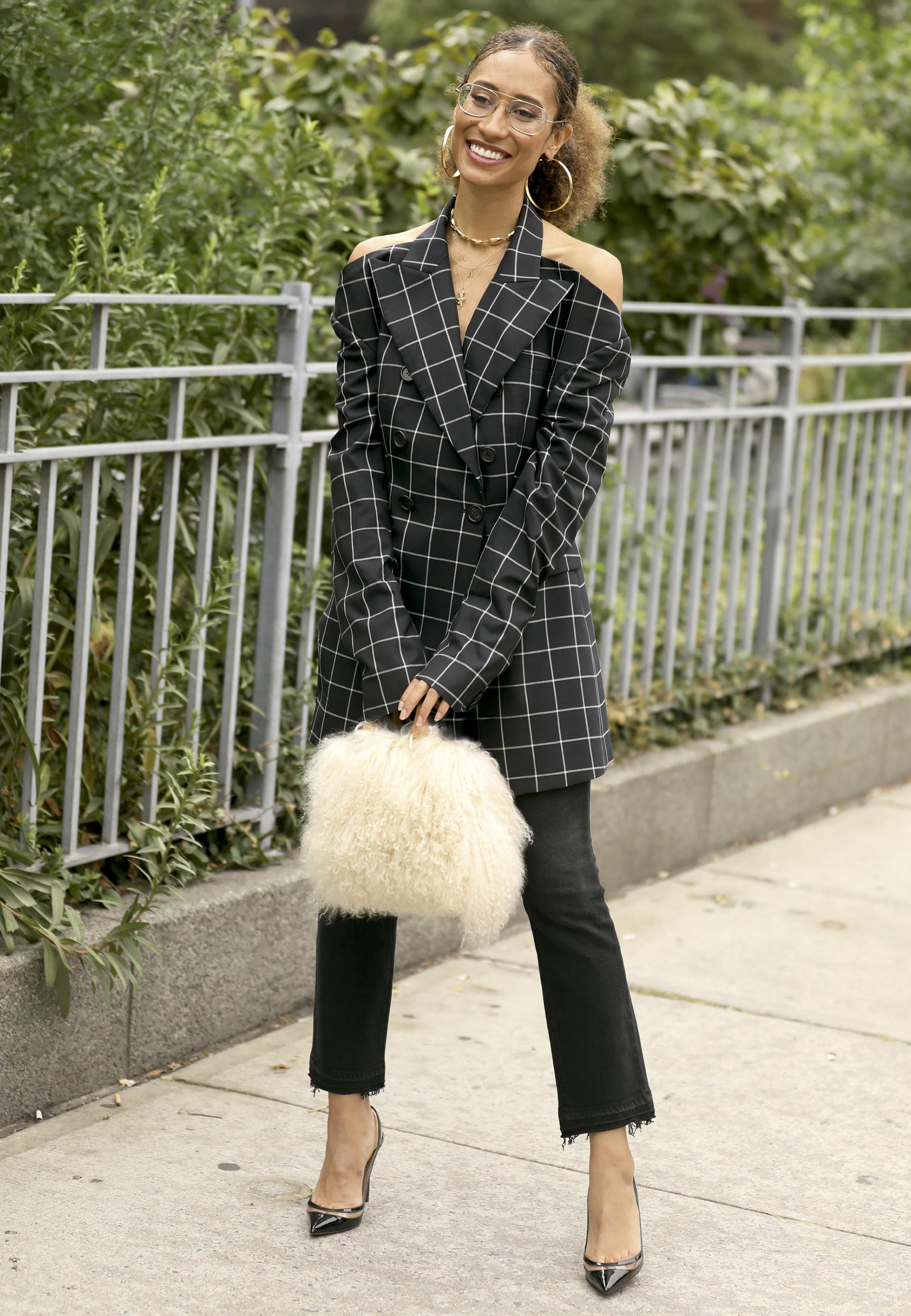 Jeans e camiseta, um terninho desconstruído ou mesmo um visual monocromático pedem uma bolsa statement. As fake fur, míni ou máxi, são pura diversão.