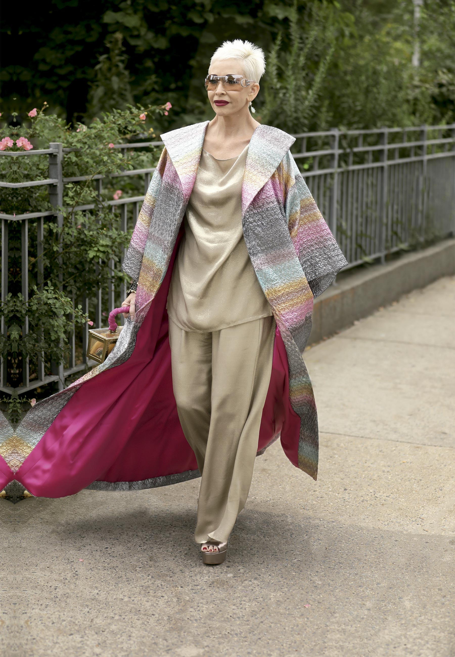 Seja qual for sua faixa etária, esta fashionista prova que um pouco de cor e muita atitude caem bem com cabelos brancos.