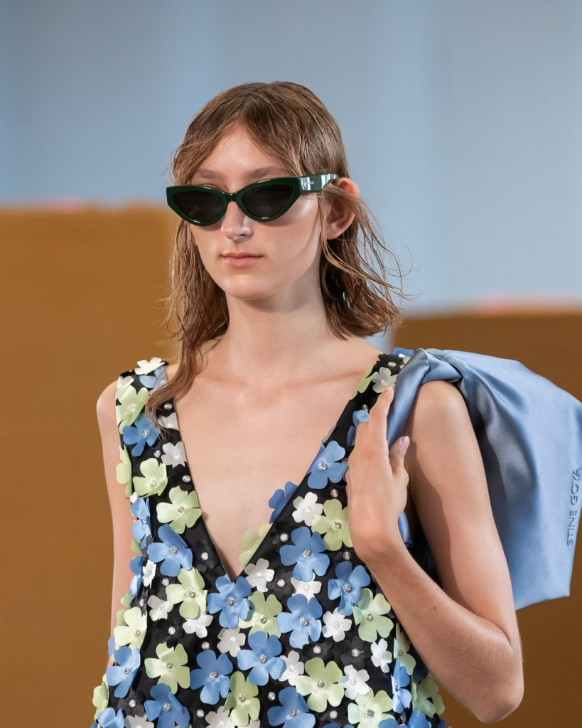 A estilista dinamarquesa Stine Goya é conhecida por colocar seu toque único e divertido na estética minimalista tradicional escandinava, com apliques de flores até vestidos cobertos por strass, sua marca homônima já tem uma loja em Londres e é uma das coleções mais esperadas da semana.