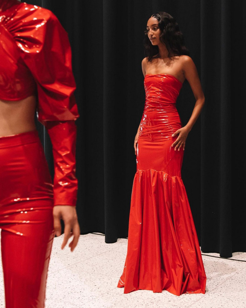 Essa é a amiga baladeira. Brilhos, paetês, cores vibrantes e vinis, vestidos perfeitos para uma noite à dentro desde laços cor-de-rosa para entrar no espírito barbie core até longos em vermelho vivo, tanto que a atmosfera da última coleção da Rotate Birger Christensen outono inverno 2023 foi uma grandes discoteca na passarela que acabou até mesmo em dança