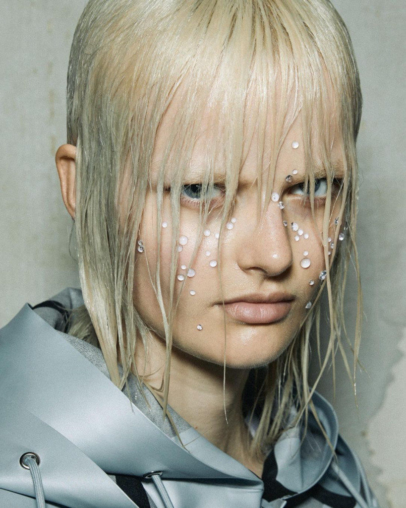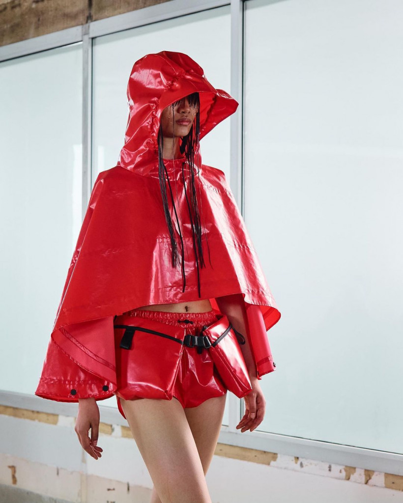 A Rains é uma nova marca fazendo barulho, com a coleção de primavera verão 2024 sendo inspirada pelo elemento no próprio nome, a chuva. Com capas de chuva e tecidos impermeáveis com até mesmo gotas de água em forma de aplicações na beleza em conjunto com o cabelo molhado, é a combinação perfeita da estética para a marca.