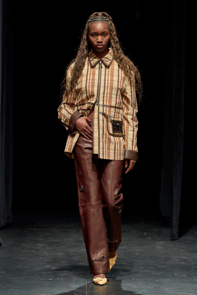 A Holzweiler é uma marca nascida na Noruega que tem um bom espaço na semana de moda de Copenhague, fez bom barulho na temporada passada com roupas inspiradas na estética puffer e até uma capa paraquedas. Com uma visão contemporânea para os clássicos do guarda-roupas, a estética da marca inclui uma paleta de tons neutros, terrosos e novos formatos em silhuetas.