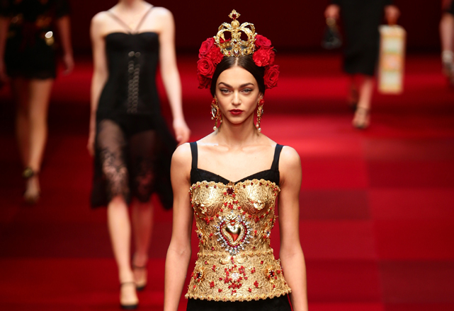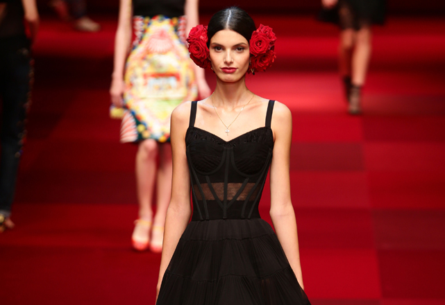 13 / 20Flores a la espanhola enfeitam os penteados das modelos da Dolce & Gabbana – Foto: Getty Images