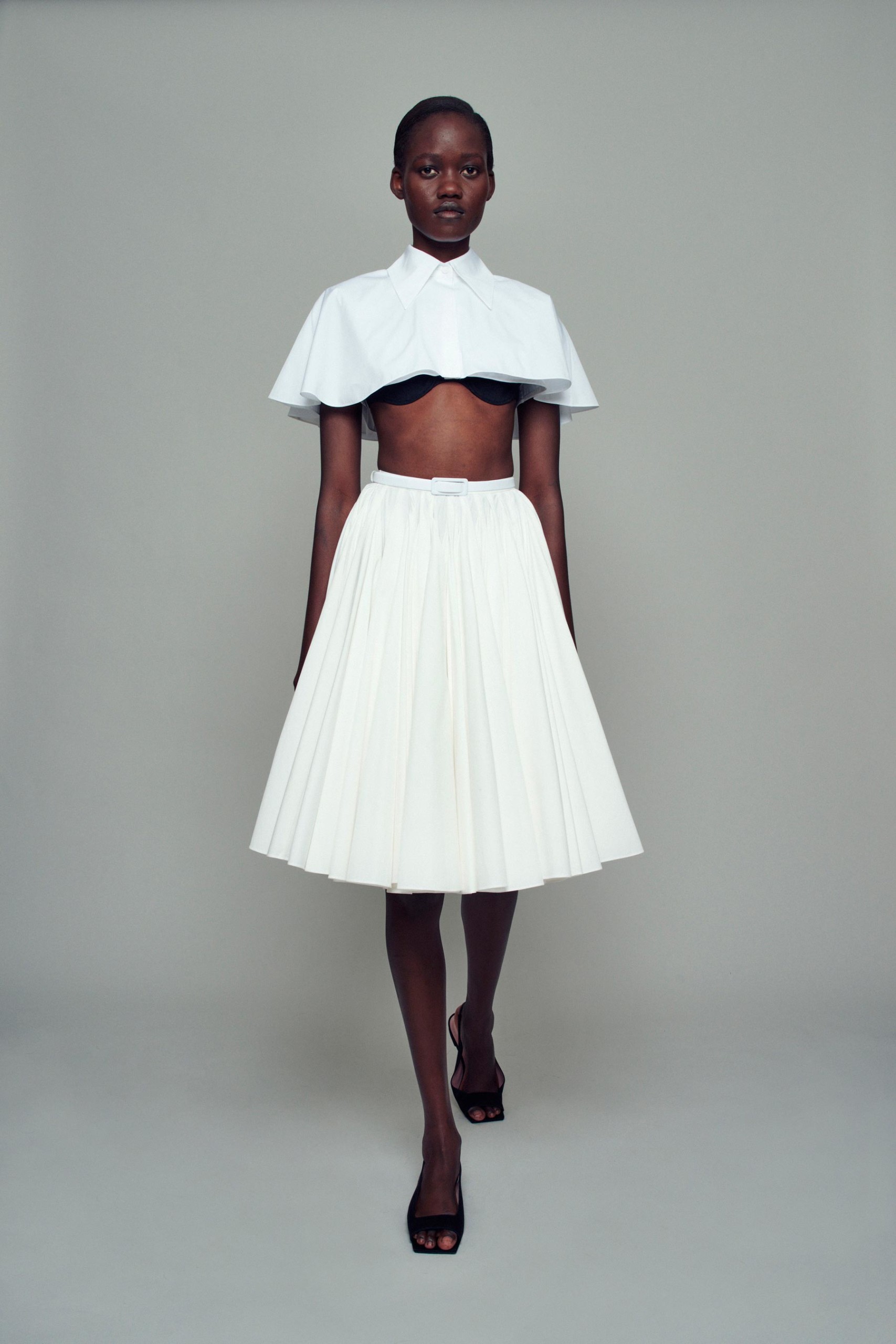 Estilista queridinha de Kate Middlenton, Emilia se inspirou no livro “Faery Lands of the South Seas”, dos escritores e viajantes profissionais James Norman Hall and Charles Bernard Nordhoff. “A descrição deles sobre os locais visitados beira o conto de fadas, mas é como eles viam aqueles lugares”, resume Emilia. O resultado se traduz em saias amplas combinada a tops cropped, estampas de veleiros e um conjunto de calça e blazer usado com sutiã sem alça.