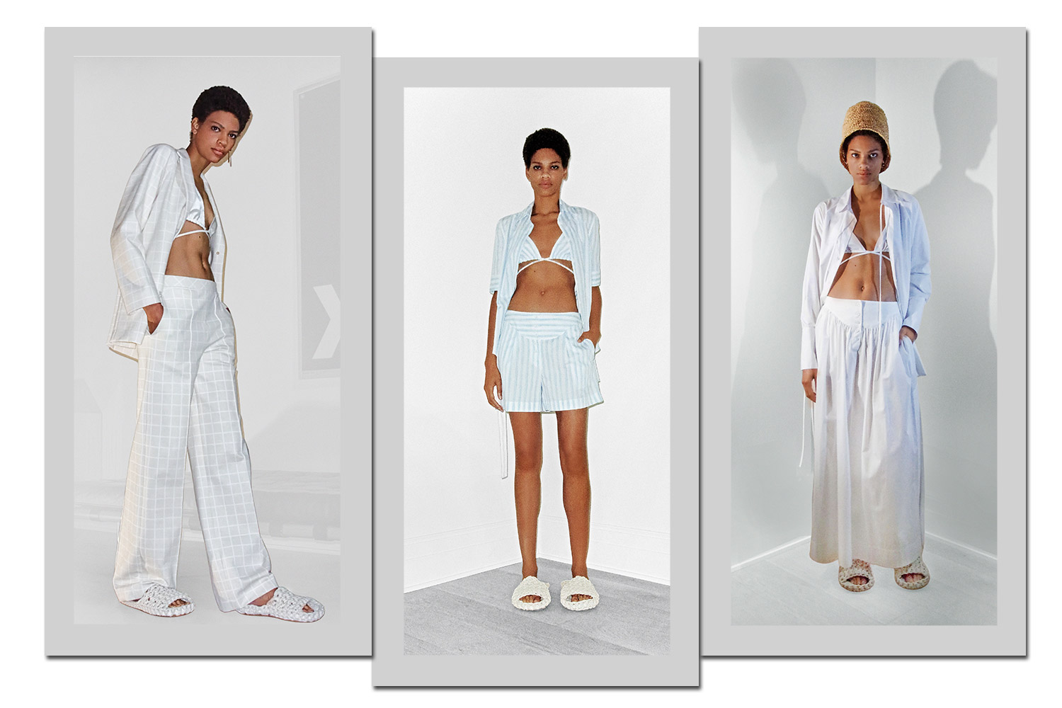 Rosetta Getty vai para a praia neste verão, e se apropria do biquíni tipo cortininha, que ganha espaço no escritório. E tudo fica muito elegante com sua ótima alfaiataria.