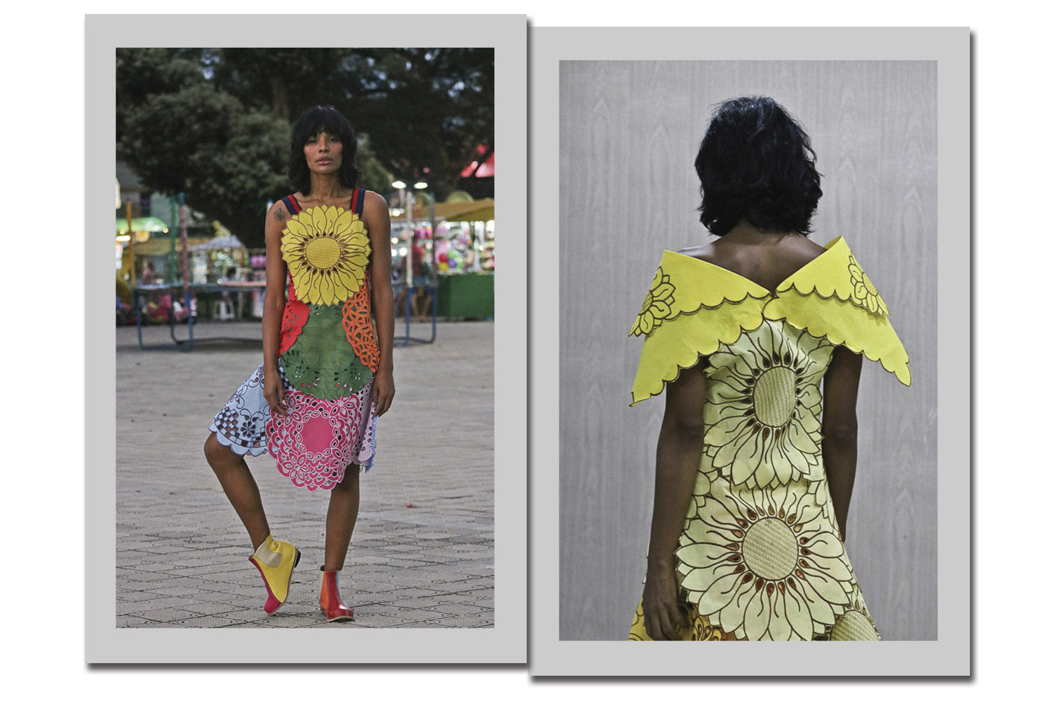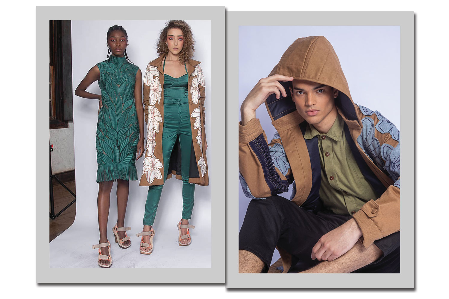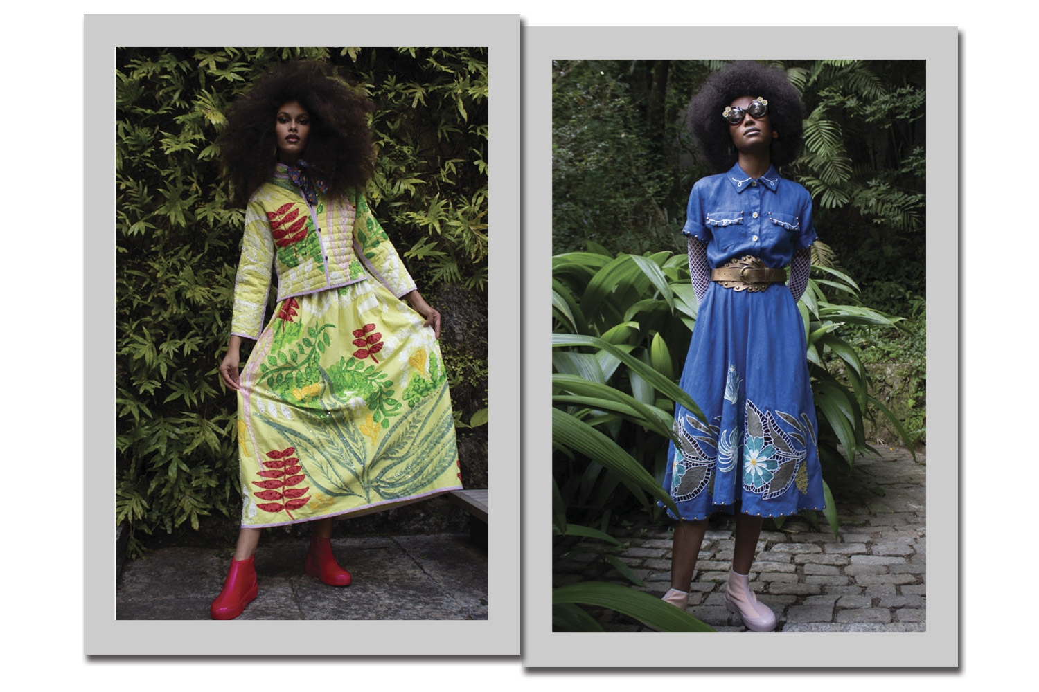 Com flores também recortadas em tecidos para depois serem costuradas em peças como casacos e jaquetas, os desenhos de Ronaldo Silvestre lembram obras feitas à mão.