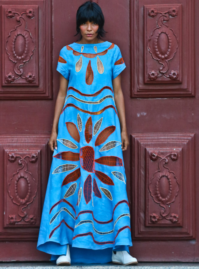 O estilista mineiro Ronaldo Fraga leva o floral ao nível de obra de arte na coleção criada em homenagem a região do Cariri. Com peças 100% em linho, ele recortou as flores em diferentes cores, para depois costurá-las em uma única peça. Uma peça artesanal que certamente será hit da sua marca homônima.