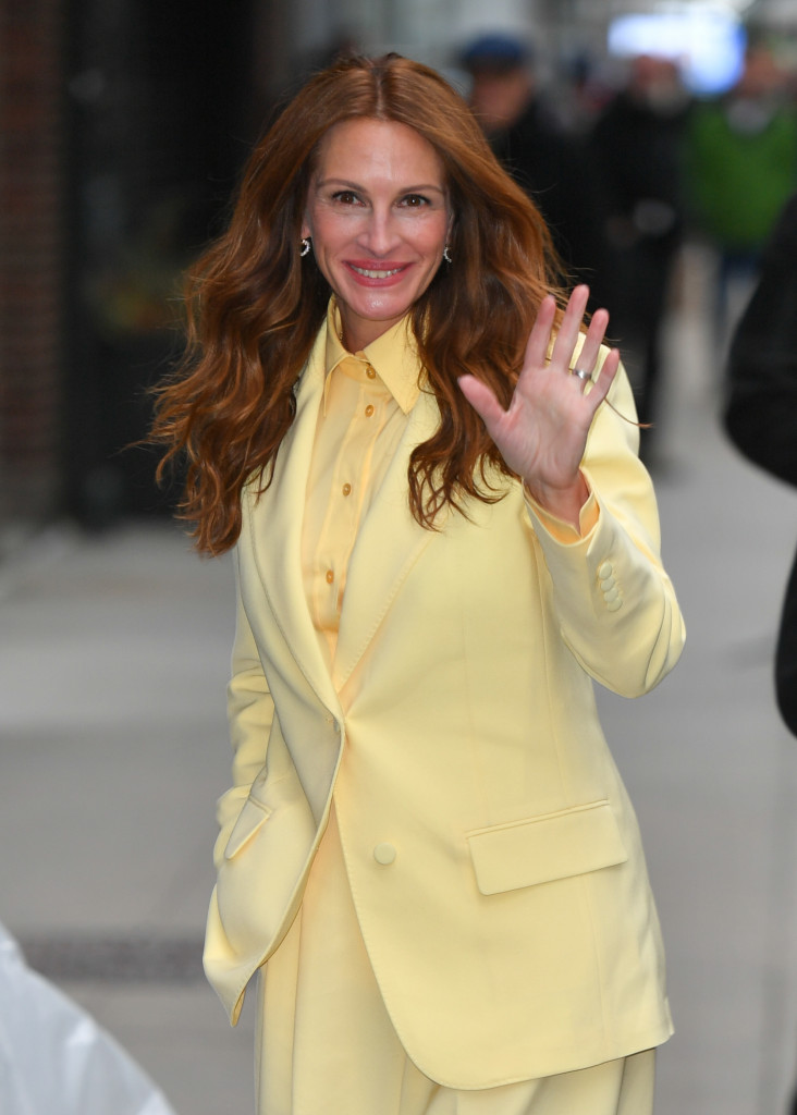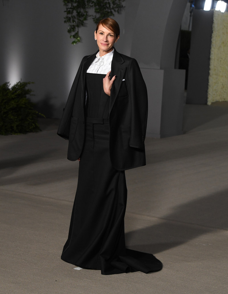 Julia Roberts é uma das maiores atrizes dessa geração. Atuando em filmes clássicos como “Uma Linda Mulher”, “Um Lugar Chamado Notting Hill”, “O Casamento do Meu Melhor Amigo”, entre outros, ela começou a carreira no fim da década de 1980 e segue na ativa até hoje. “Erin Brockovich – Uma Mulher de Talento”, lançado em 2000, a obra foi a única que lhe rendeu o único Oscar de sua carreira. O último lançamento da atriz foi em 2023, no filme “O Mundo Depois de Nós”. Atualmente, ela está envolvida em dois projetos: “After the Hunt”, do diretor Luca Guadagnino, e “Little Bee”, do diretor iraniano Ritesh Batra, que está em pré-produção. Nesta segunda-feira (28), a norte-americana completa 57 anos. Seja em eventos, tapetes vermelhos e no cotidiano, a atriz adora investir em alfaiataria, e a gente ama acompanhar. Veja abaixo algumas das escolhas de Julia:
