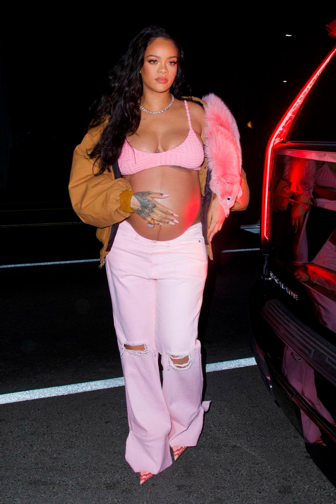 Se looks de gravidez fazem você pensar em roupas largas e modestas, pode esquecer. Com croppeds, recortes e transparências, Rihanna prova que as produções durante esse período podem ser para lá de glamorosas.