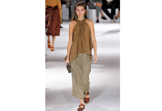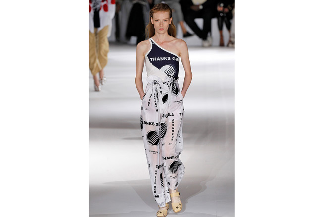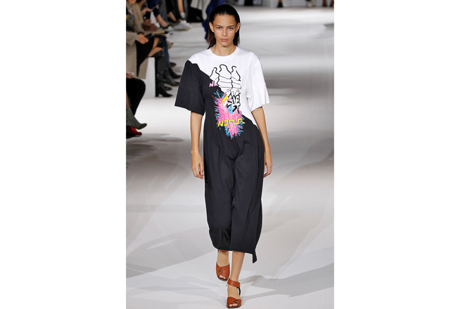 Stella McCartney abriu o dia nessa segunda-feira (03.10) da semana de moda de Paris com um desfile cheio de energia! Para a sua coleção verão 2017, a estilista combinou looks de alfaiataria em tecidos orgânicos e tons terrosos com peças estampadas e linhas esportivas. A cintura é bem marcada e acompanha amarrações e sobreposições que brincam com os volumes e formas. Conhecida por seu engajamento, Stella usa suas roupas para mandar uma mensagem: “No Leather, Thanks” (“Não ao Couro, Obrigada”)! Em nossa galeria, você confere os looks apresentados pela estilista britânica.