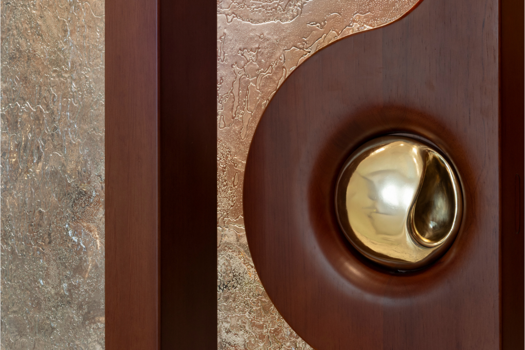 A arquitetura celebra a herança artesanal italiana em cada detalhe. O piso de terrazzo multicolorido — técnica típica das casas venezianas — cria um efeito de movimento inspirado na lagoa de Veneza. Prateleiras, portas e estruturas em nogueira italiana trazem o calor elegante da Villa Necchi, ícone modernista de Piero Portaluppi em Milão. Mármore e brises remetem ao design dos anos 1950, enquanto o vidro Murano homenageia os mestres vidreiros do Vêneto.