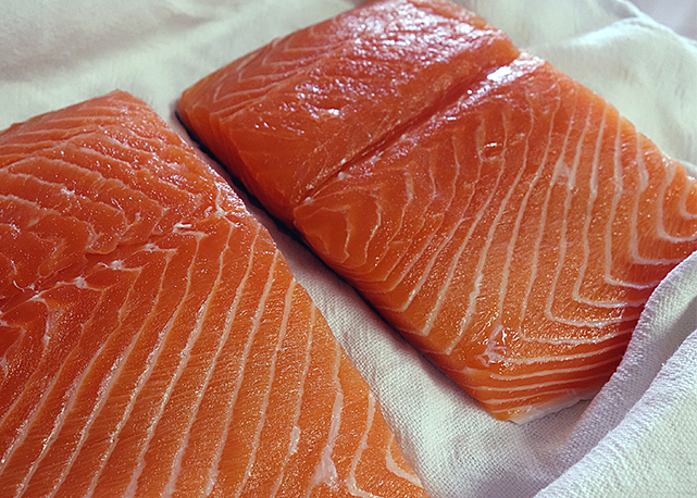 650 g de salmão limpo, cortado em 4 filés